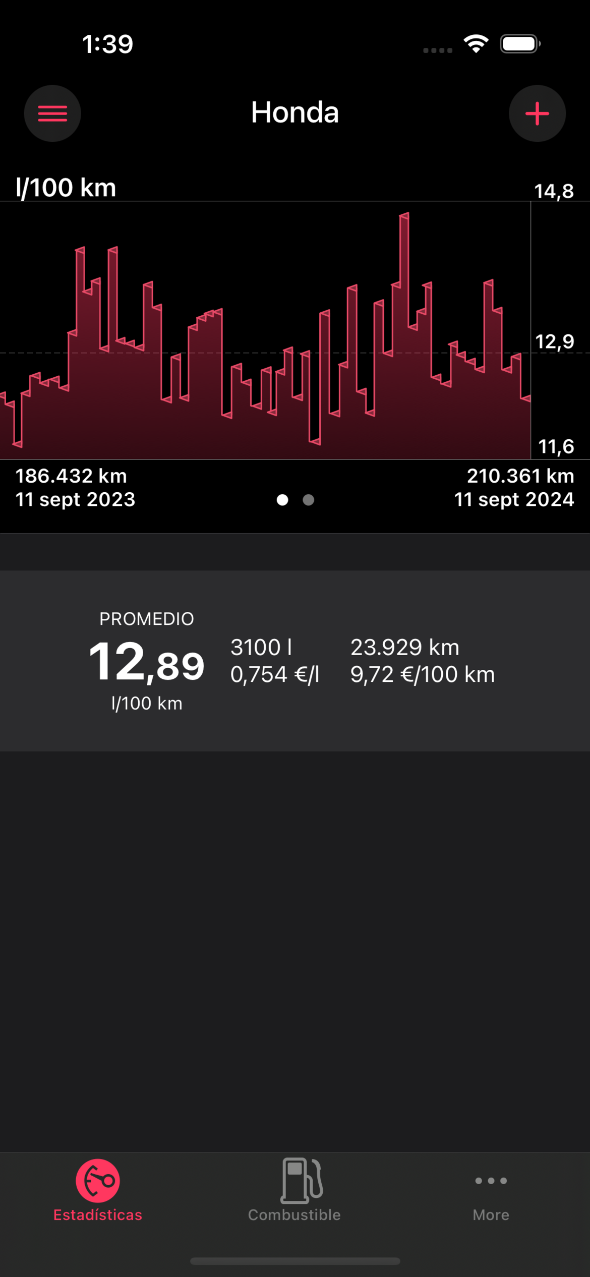 • los precios de los combustibles / kilometraje gráfico y estadísticas, todos en una sola pantalla.