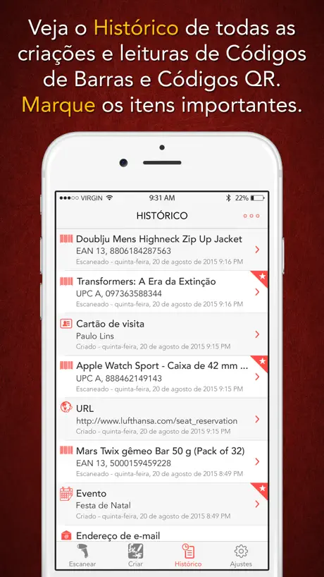 Ele também permite que você crie e exporte todos os tipos de Códigos de Barras e Códigos QR, do zero, com apenas alguns toques.