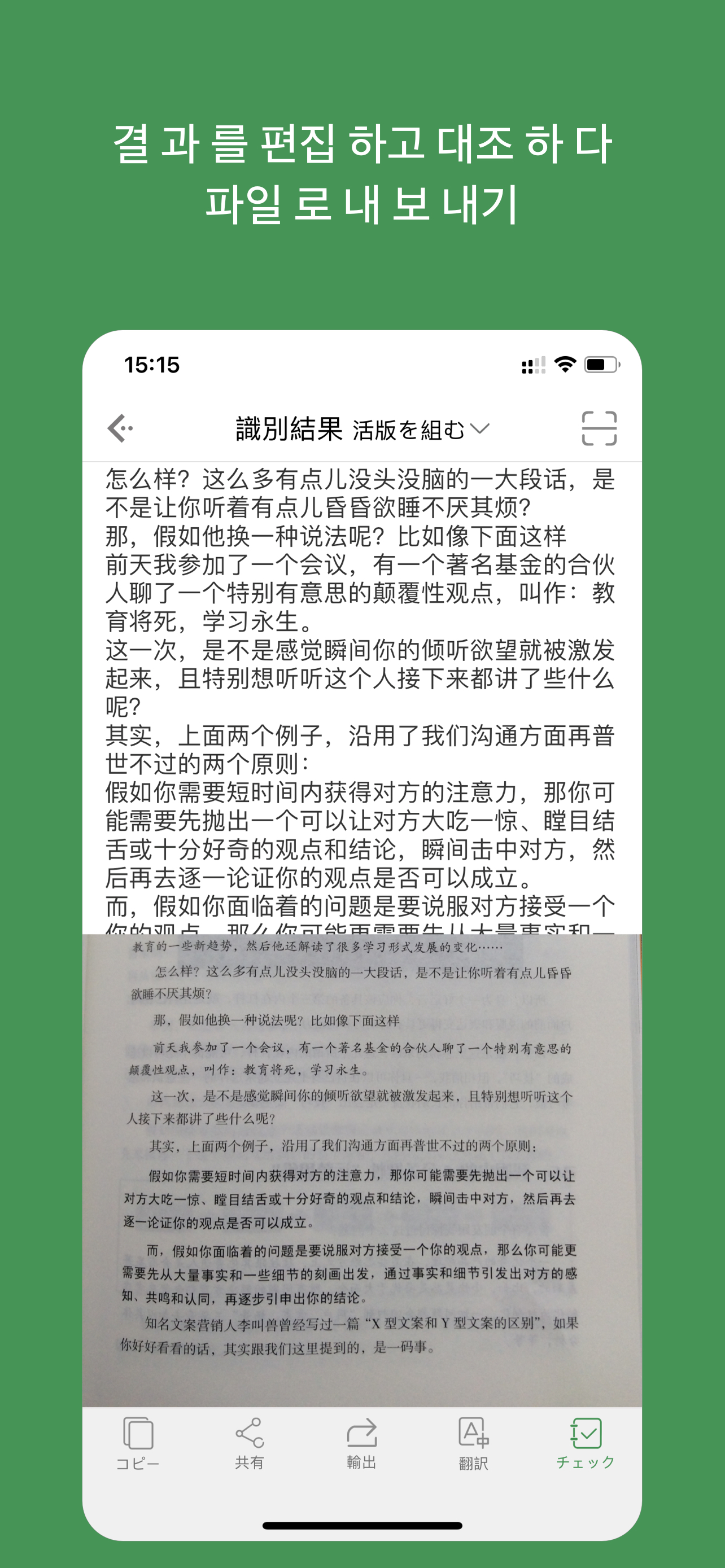 用这个app有时扫描英文教材,结果出来准确性挺好的,就是有时不该换行的地方会换行,希望可以改善一下。英文翻译到中文翻译得还不错,不是很死板的那种翻译,收费也不贵。我有时在iPad打开电子书,想翻译的时候一般是截图,然后把图片不保存,直接用白猫打开,但是打开后它会直接给我保存在相册里,怎样才能让它不保存到相册里呢?