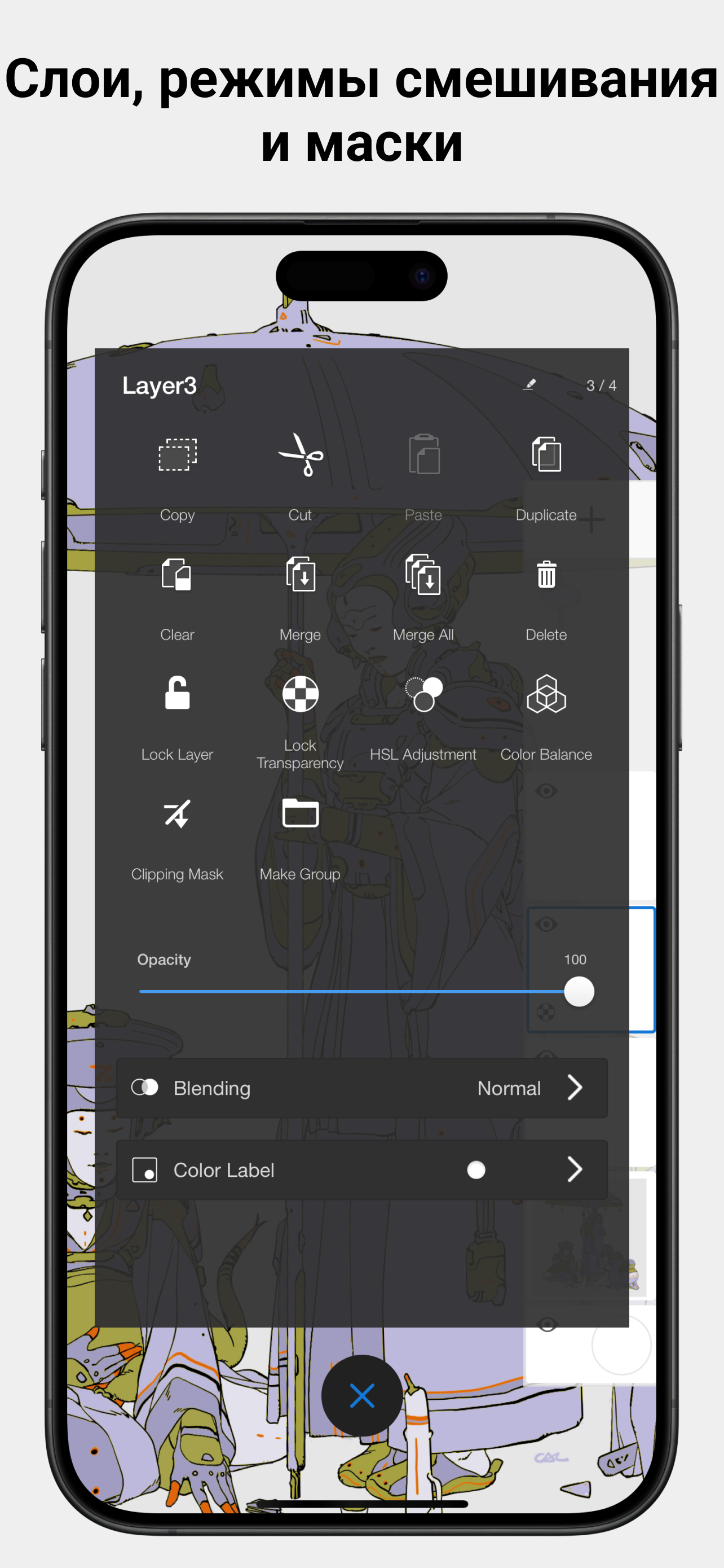 • Слои с полным набором режимов наложения обеспечивают гибкость при создании и изучении рисунков и цвета
