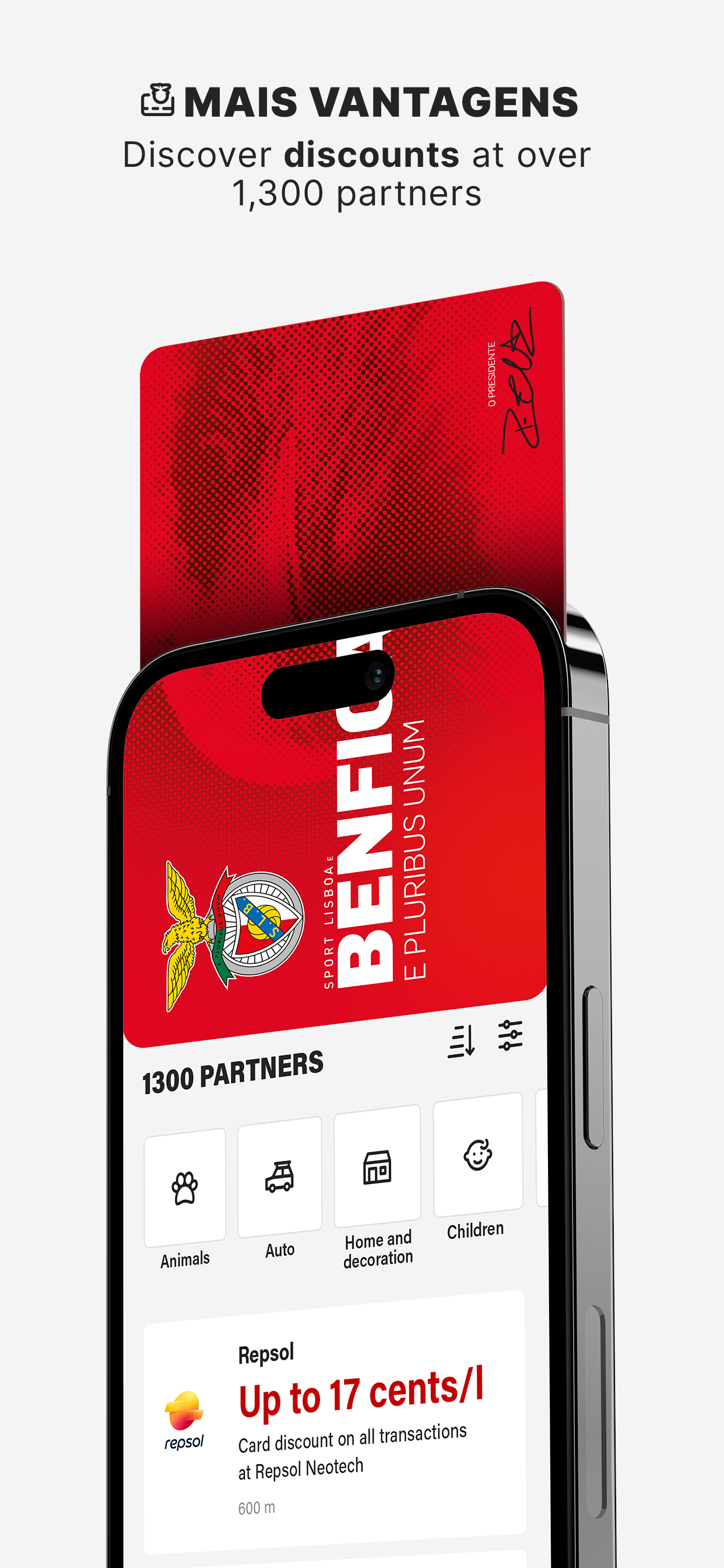 Save money with Benfica on fuel, technology, food, travel, and much more. Over 1,200 partners organized by location, category, and type of discount.