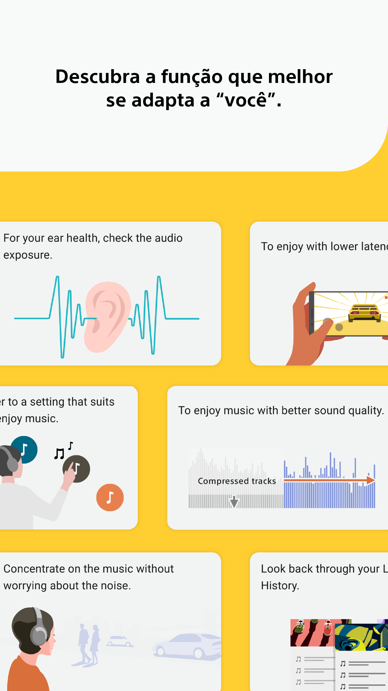 O aplicativo é muito bom, mas ainda tem alguns problemas de acessibilidade para pessoas cegas. Também sugiro que seja possível utilizar qualquer um dos fones para reproduzir música se estivermos usando apenas um lado, mesmo que este lado não tenha sido configurado para controle de reprodução