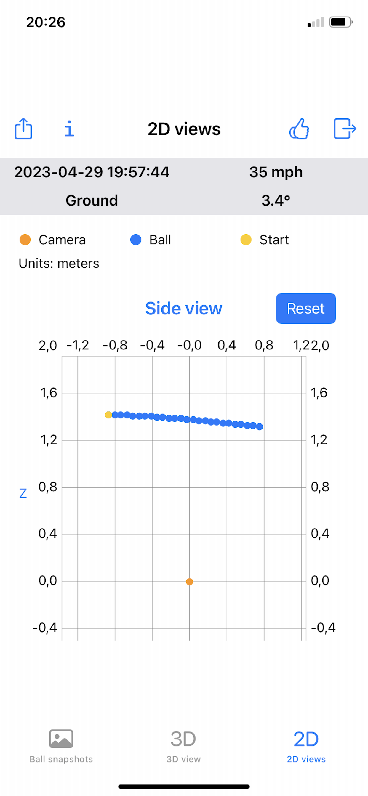 - 3D and 2D views of the ball trajectory