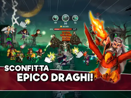 Hire guerrieri potenti e maghi e salire di livello, ciascuno con abilità uniche.