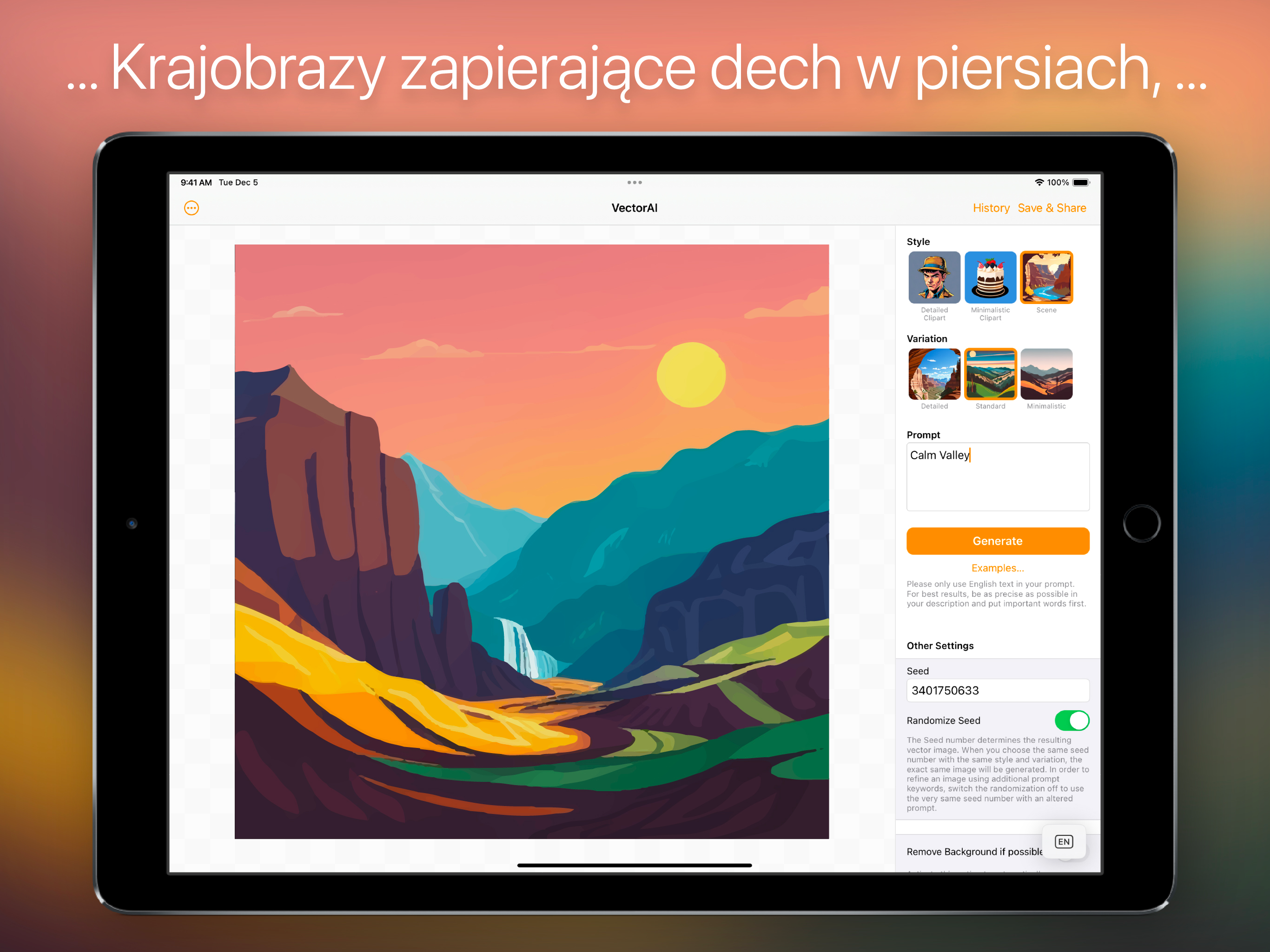 Potrzebujesz szybko wysokiej jakości grafiki wektorowej, takiej jak muffinka lub tort na zaproszenie na imprezę, stos prezentów i balonów na urodziny dzieci lub krajobraz do czołówki filmu z wakacji? Oczywiście można ją stworzyć samodzielnie, na przykład za pomocą Logoist 5 – lub można użyć zupełnie nowego VectorAI i po prostu powiedzieć aplikacji za pomocą wprowadzania tekstu, jak ma wyglądać grafika. Wystarczy podać kilka warunków, a VectorAI przejmie pracę jako osobisty projektant graficzny!