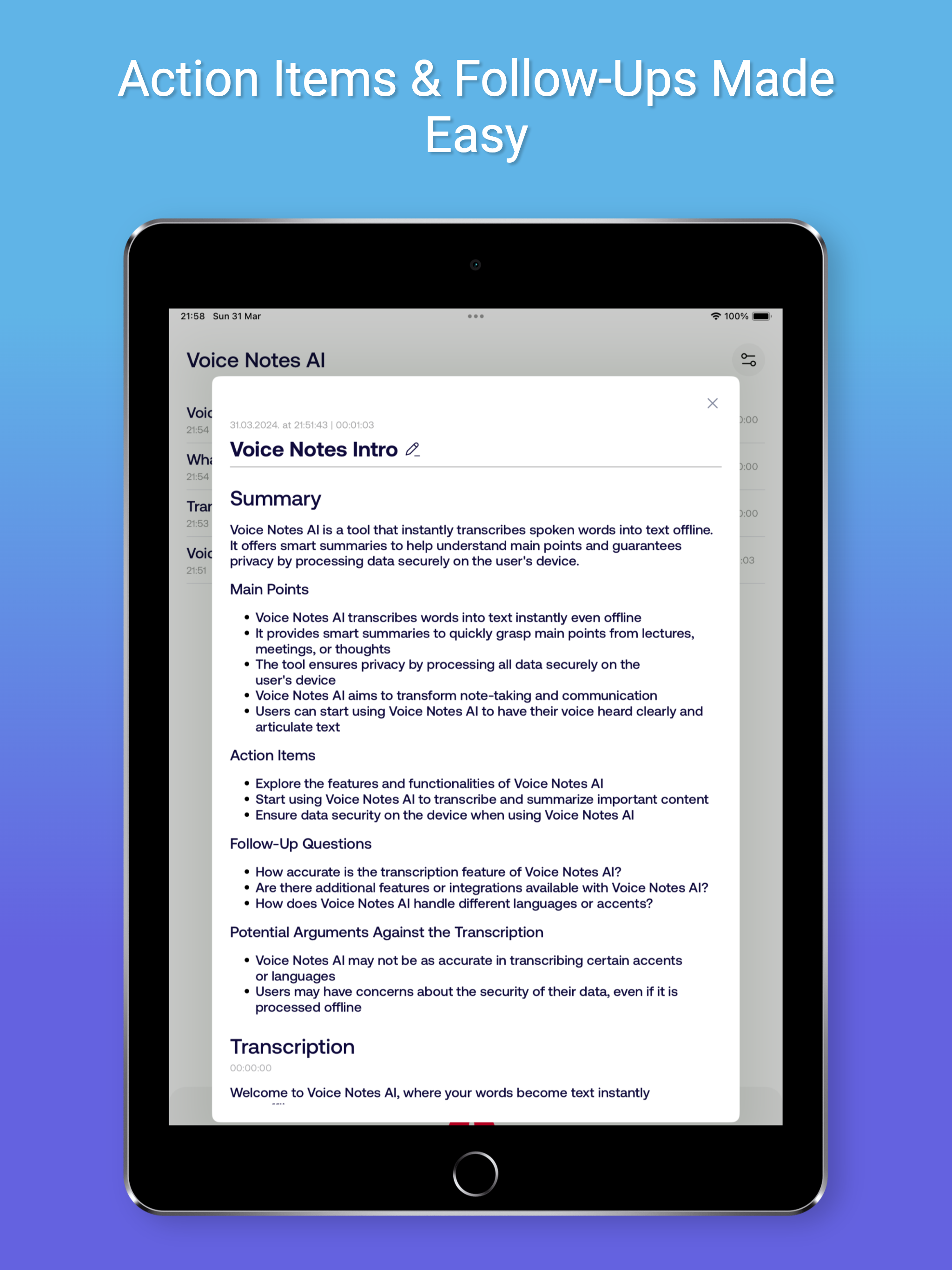 Unlock the full potential of your conversations with Voice Notes AI. Download today and elevate your note-taking to the next level.