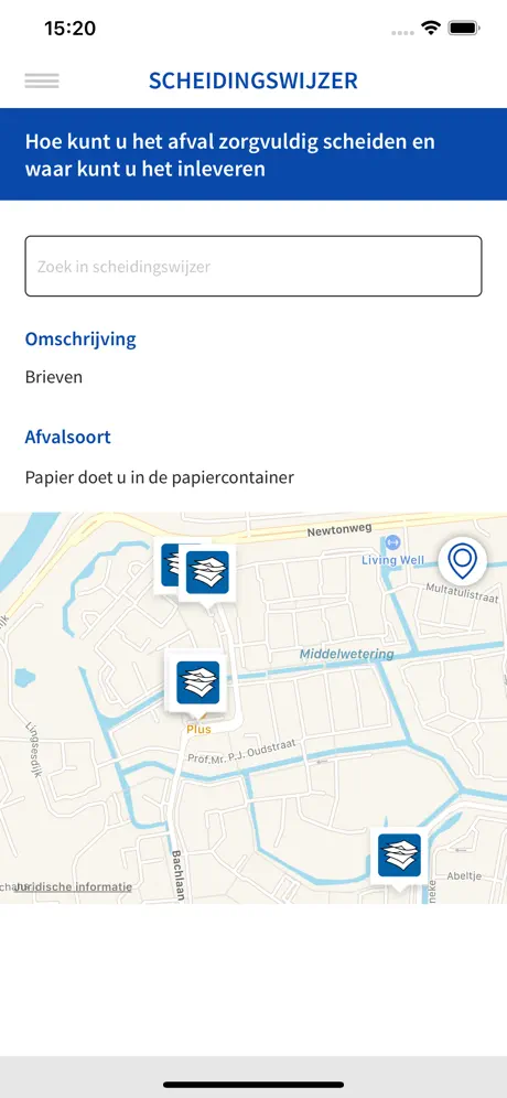In de app vindt u de afvalkalender, scheidingswijzer en containerlocaties (niet voor bedrijven).