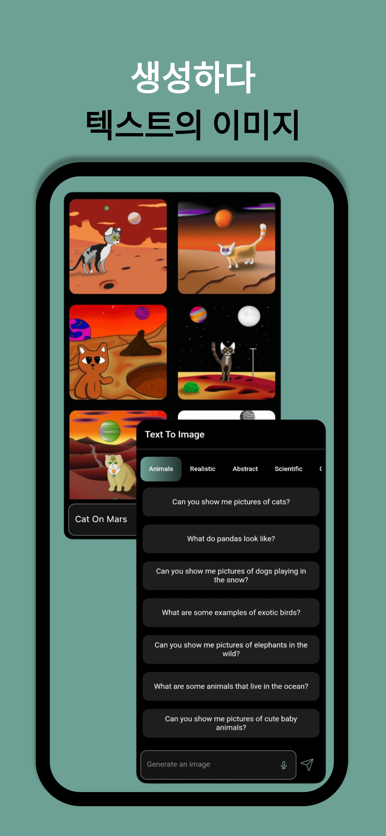 + 제공된 텍스트를 기반으로 시각적으로 인공 지능으로 생성된 아트 가져오기