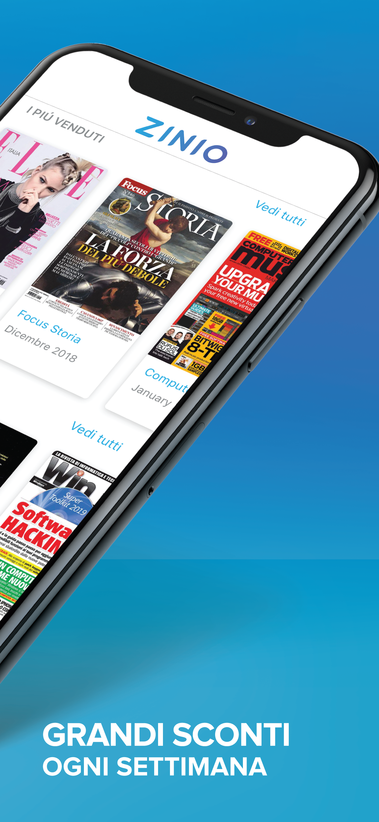 ZINIO has several in-app purchases/subscriptions, the average in-app price is €6.99.