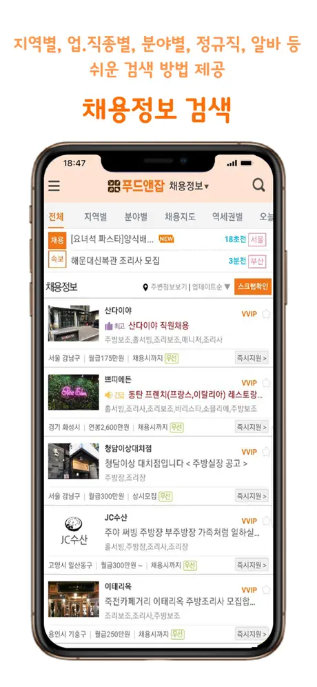 외식업들만 모여있어서 너무 편하네요 업종별로 검색 할 수 있어 검색시 매우 편리해요 주방보조,알바,홀서빙 등등 뿐만아니라 주차관리분야 까지 세부적으로 나누어져 있어 좋습니다 외식업 구하시는 분들 이앱 꼭한번 써보세요~