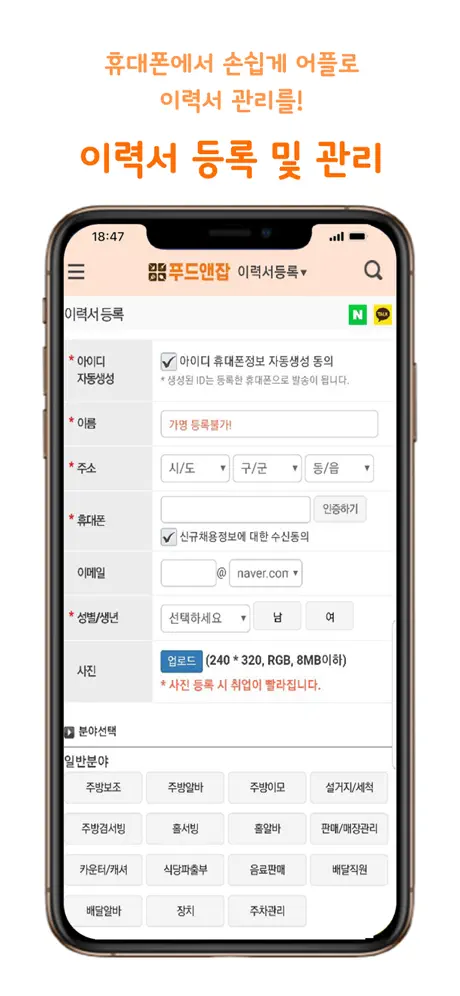 이력서 작성이 안돼요