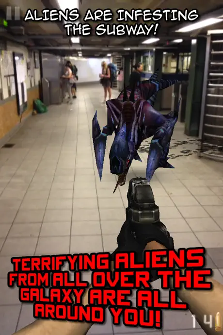 - Totally immersive Augmented Reality puts aliens all around you in the real world. IT'S LIKE THEY'RE REALLY THERE!