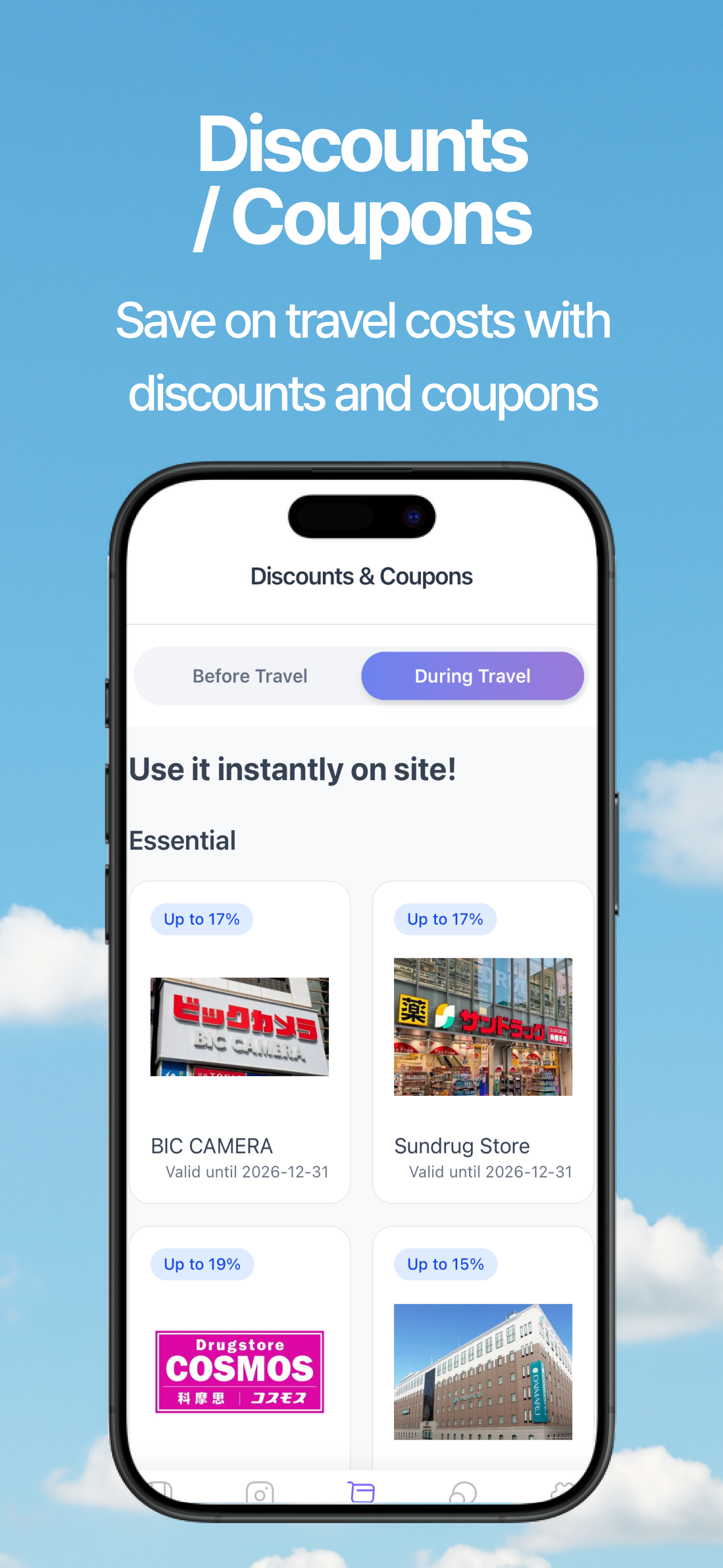 ● Travel insurance, eSIM, and shopping discount coupons