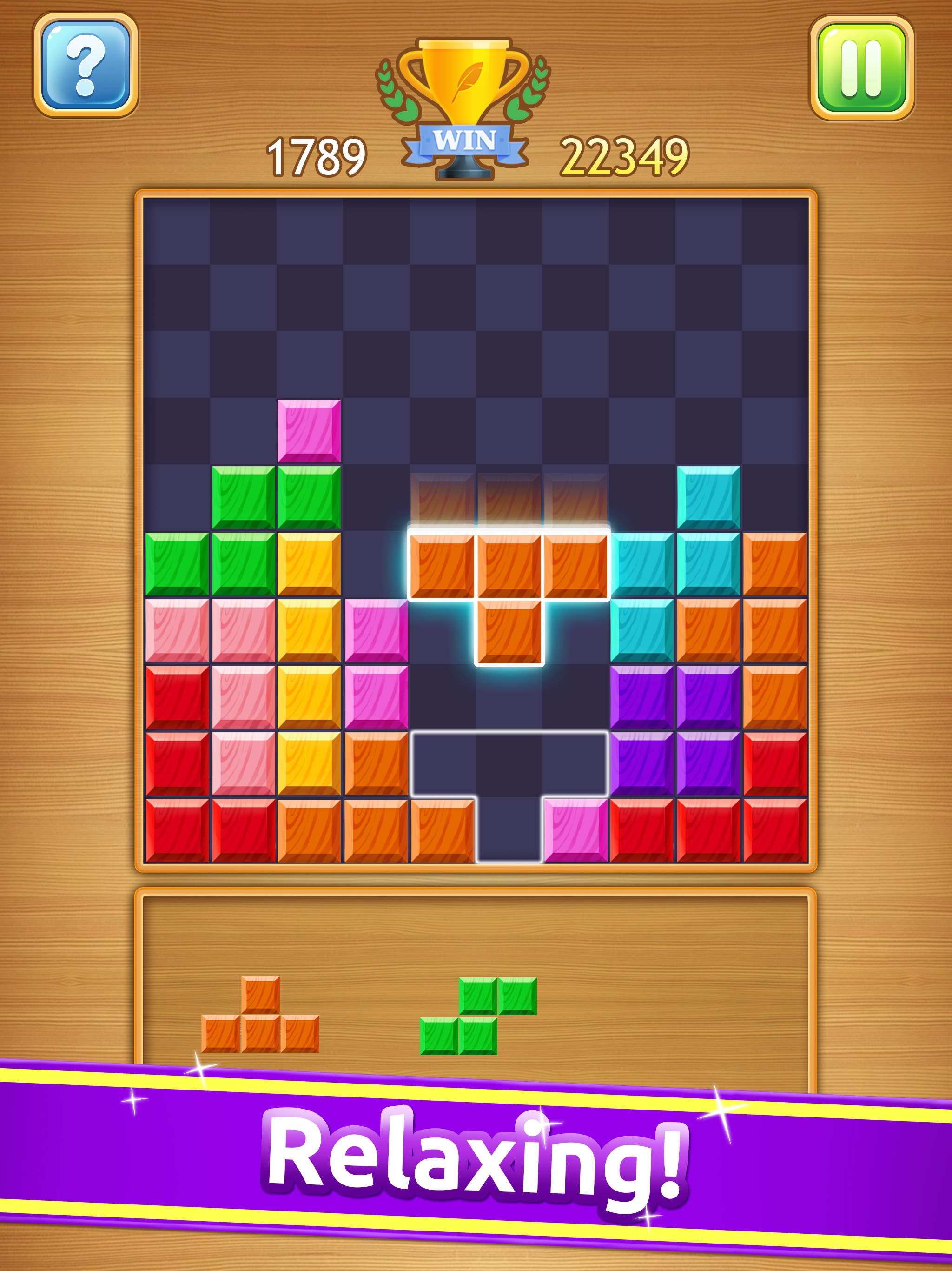 Wood puzzle is an engaging,line-building puzzle game.You will get an amazing feeling with 10 x 10 board.