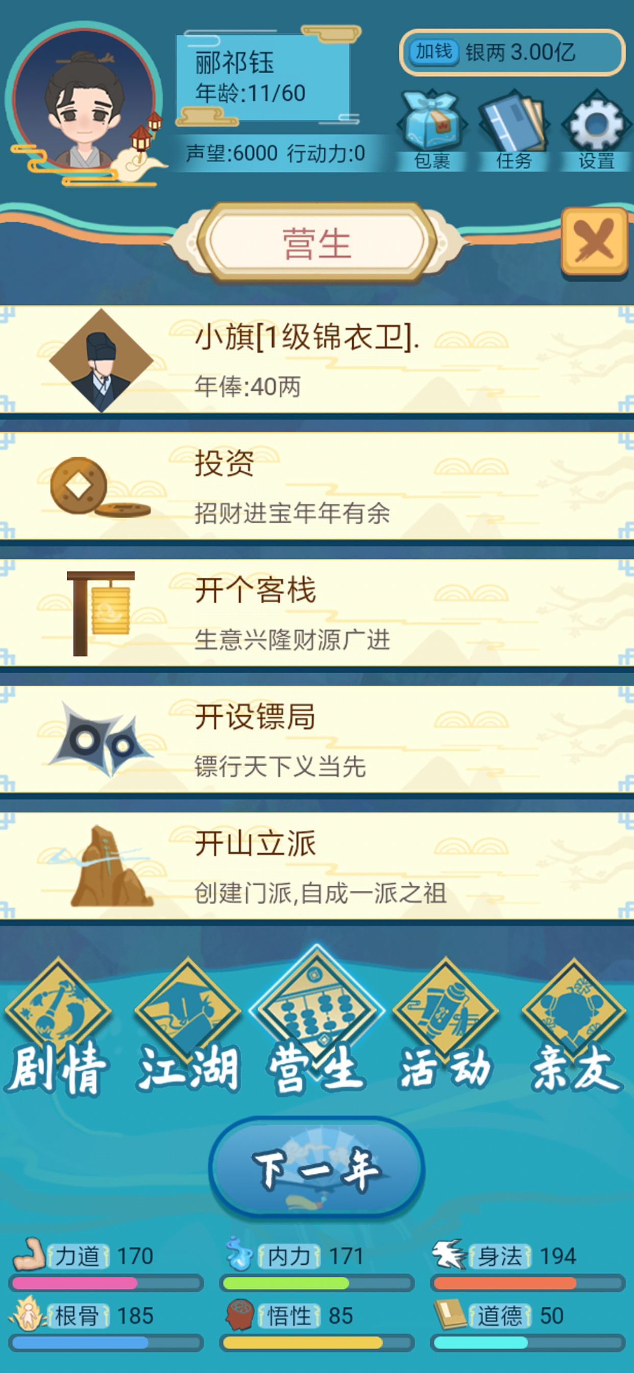 那个最终boss死太监也太难打了,三个任务最后都是要求打败他 想先练成葵花宝典都得先打败他 我不练怎么打败他??? 还有主线任务武侠人生是坑!!! 每次要加十万 二十几次 纯攒要攒到什么时候?还不如别点 搞得我钱全没了 任务一半都没完成