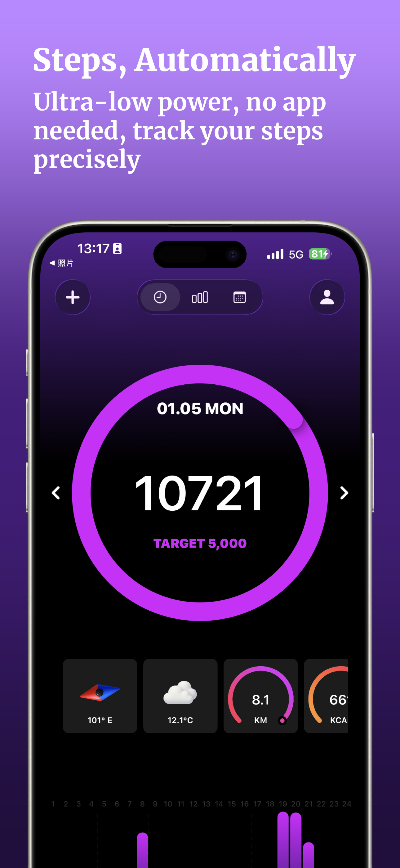 Today’s Step Tracker uses your phone’s built-in sensors to count steps, without using GPS, preserving battery life.