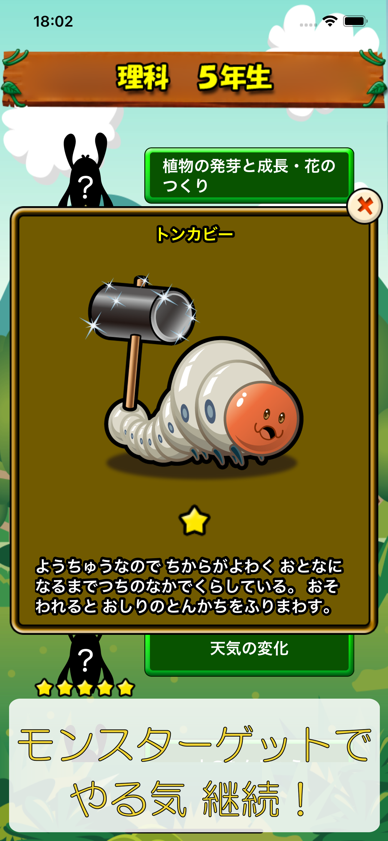 全問正解したらモンスターゲット👾するシステムにして欲しいです。(3回全問正解したのにゲットできない)