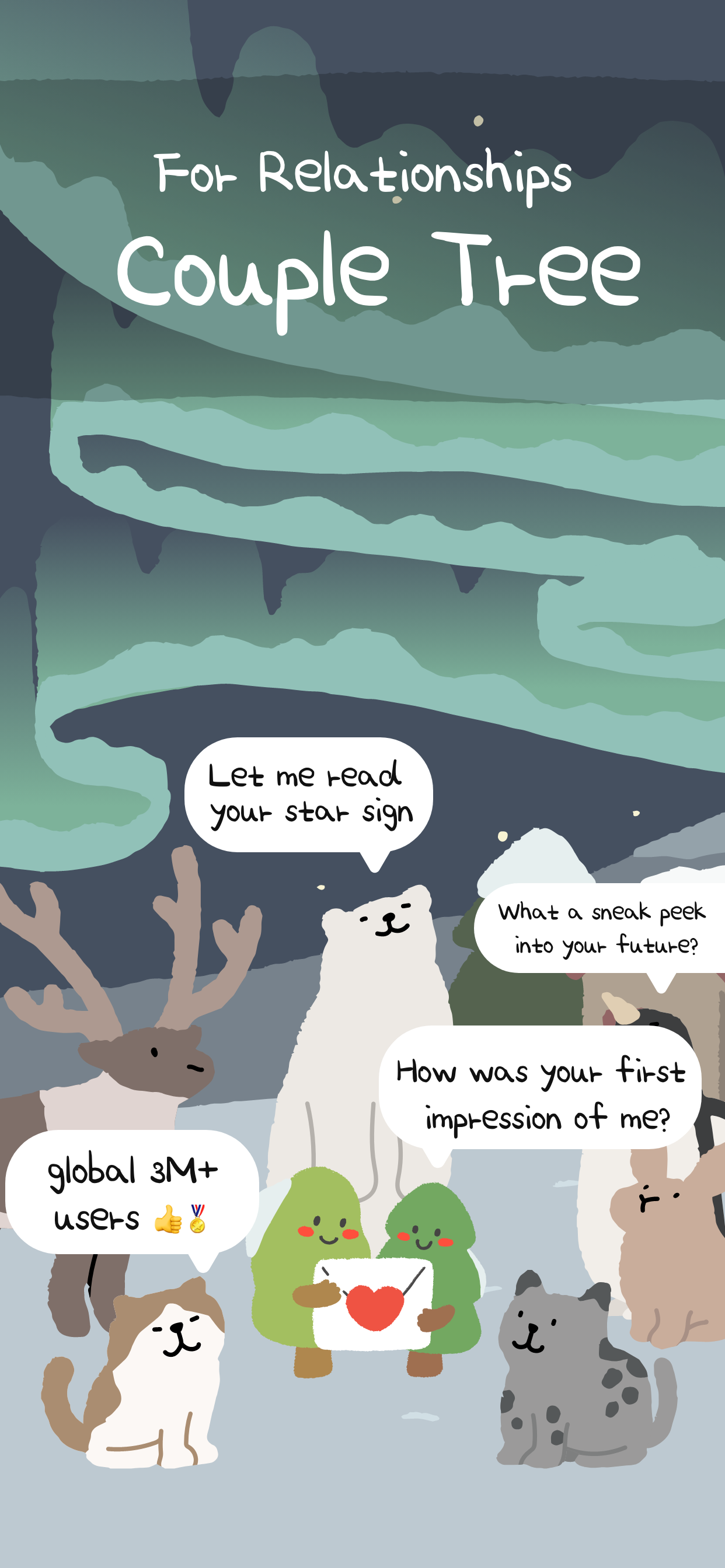 -Answer thoughtful couples questions and complete relationship activities to plant and nurture trees in your private forest, symbolizing your growing love.