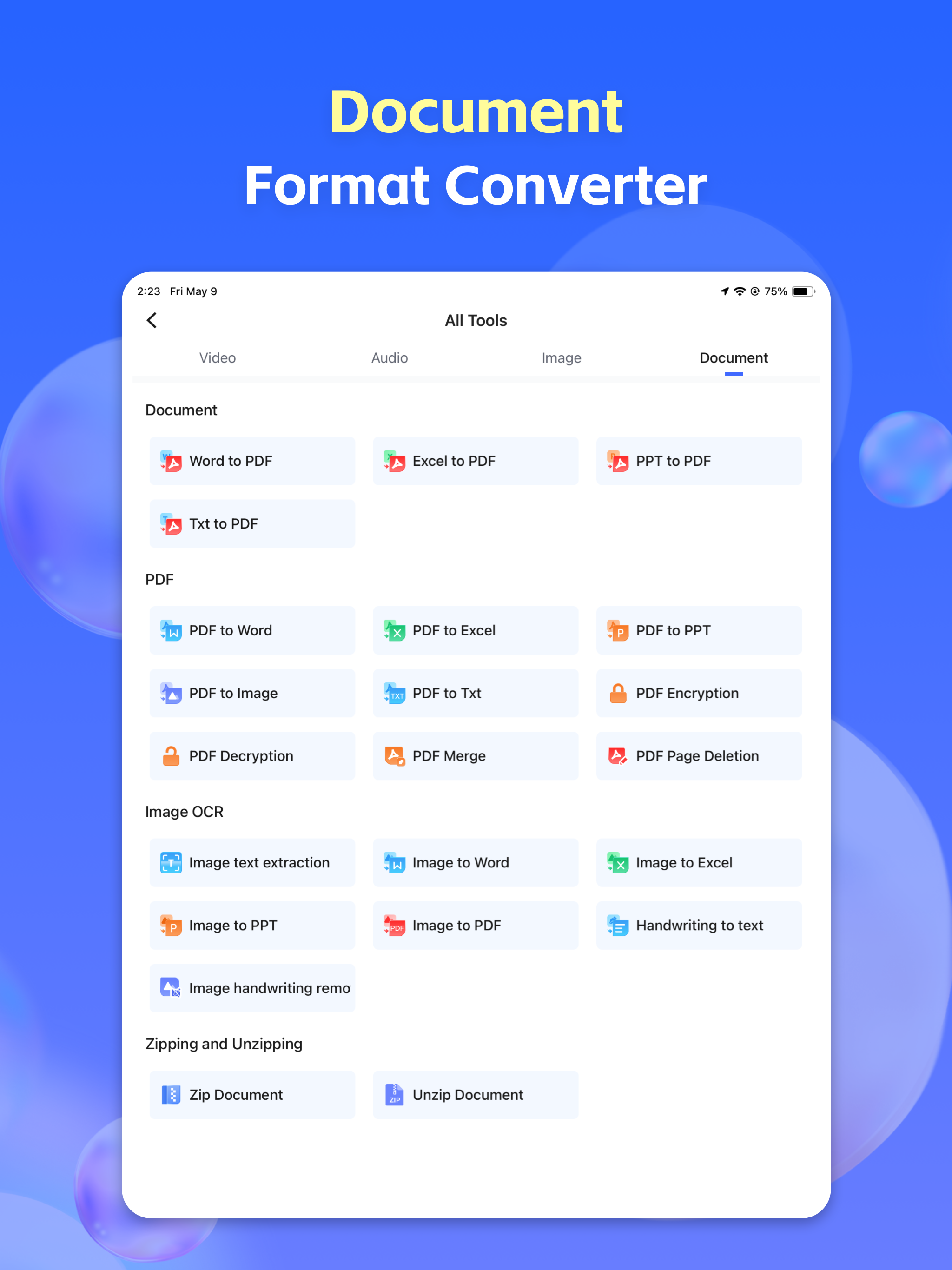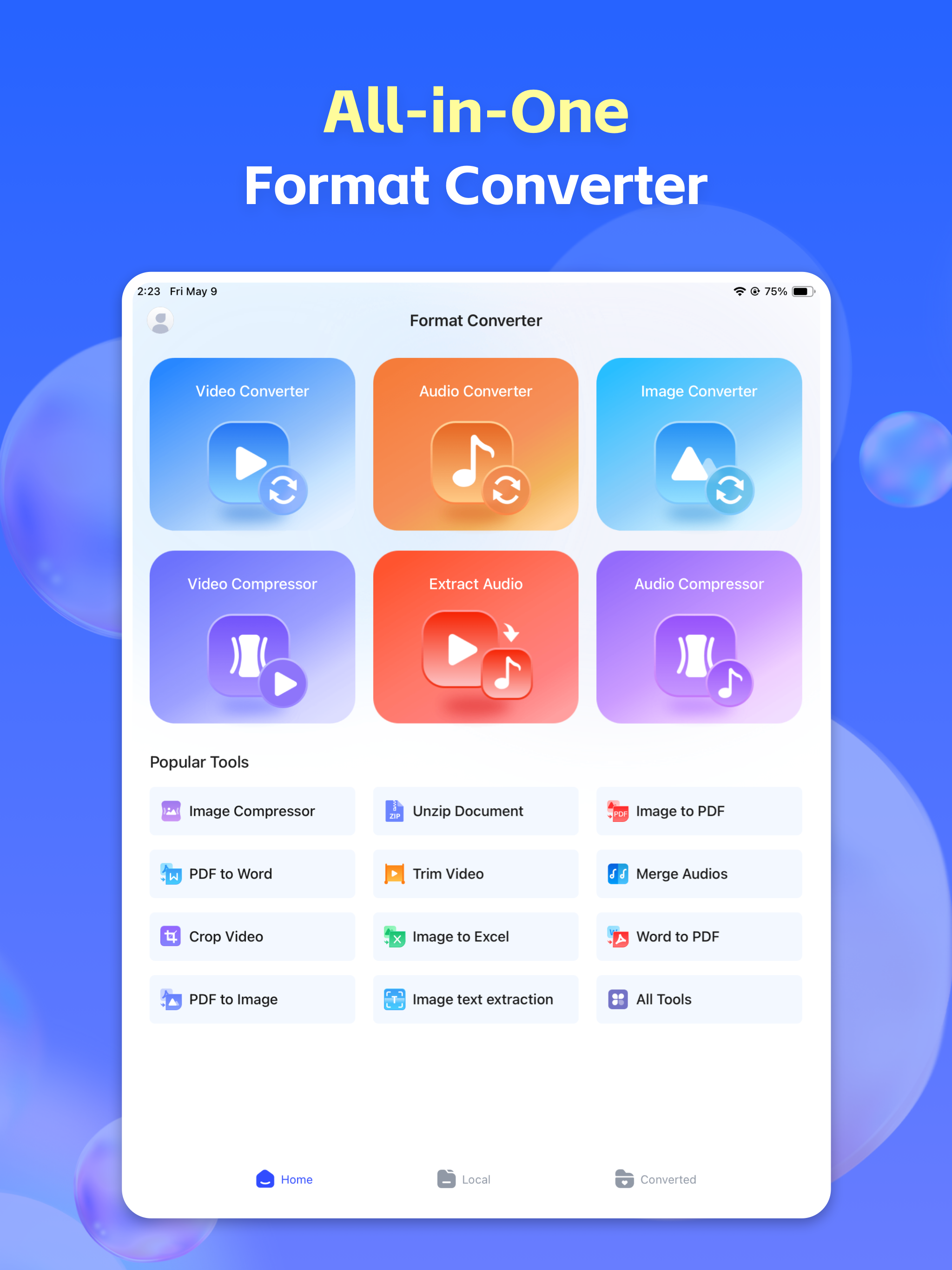 Könnyedén konvertálhat videókat MP4-be, kinyerhet MP3 csengőhangokat filmekből, vagy kötegelten tömöríthet képeket a helytakarékosság érdekében. A Format Converter professzionális eredményeket nyújt minimalista munkafolyamattal, áttörve a formátumkorlátokat az eszközén. Akár munkáról, akár kreativitásról van szó, a fájlkezelést zökkenőmentessé és hatékonnyá tesszük.