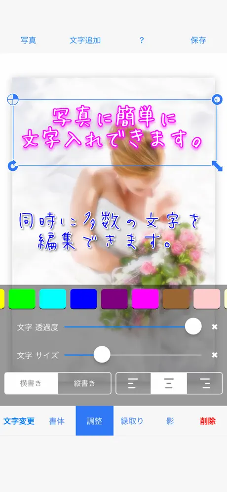 文字の大きさが小さくできたり、大きくできたらいいと思う 他はフォントも色々あってとてもいい 文字の大きさが変えられたら星5なのに