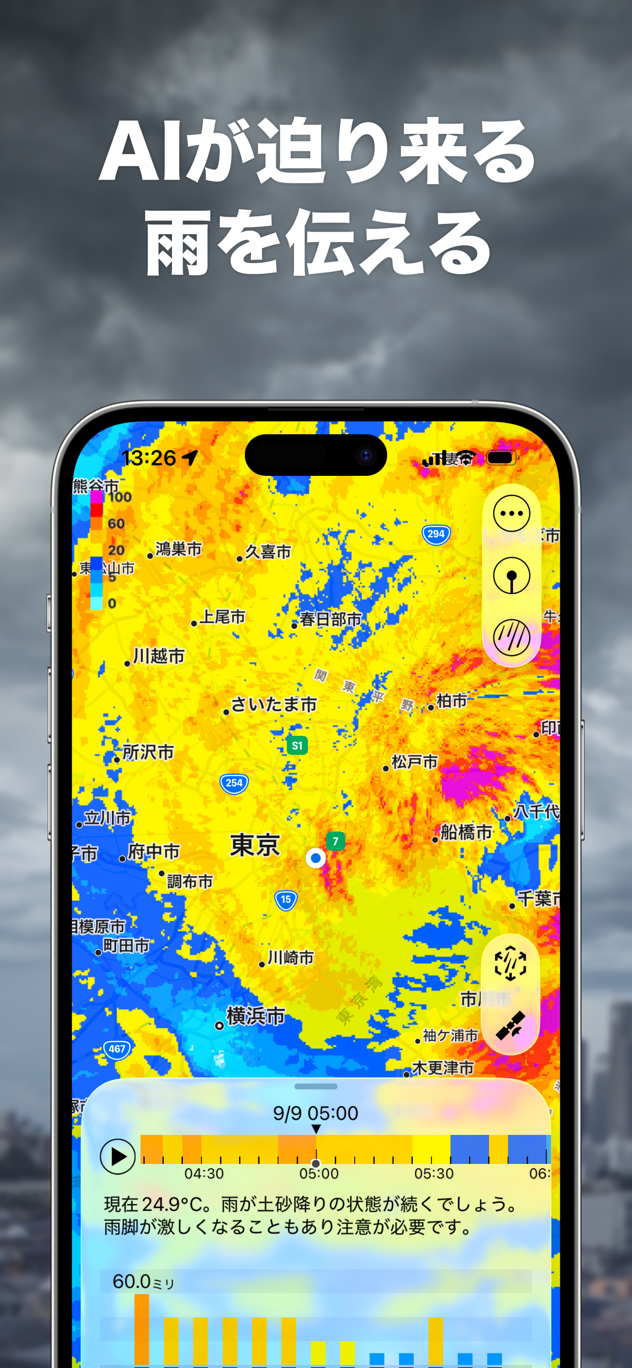 雨が降って10分後くらいに通知くる。外ザーザー「雨雲が近づいています」いや、知ってるわってなる。使えない。