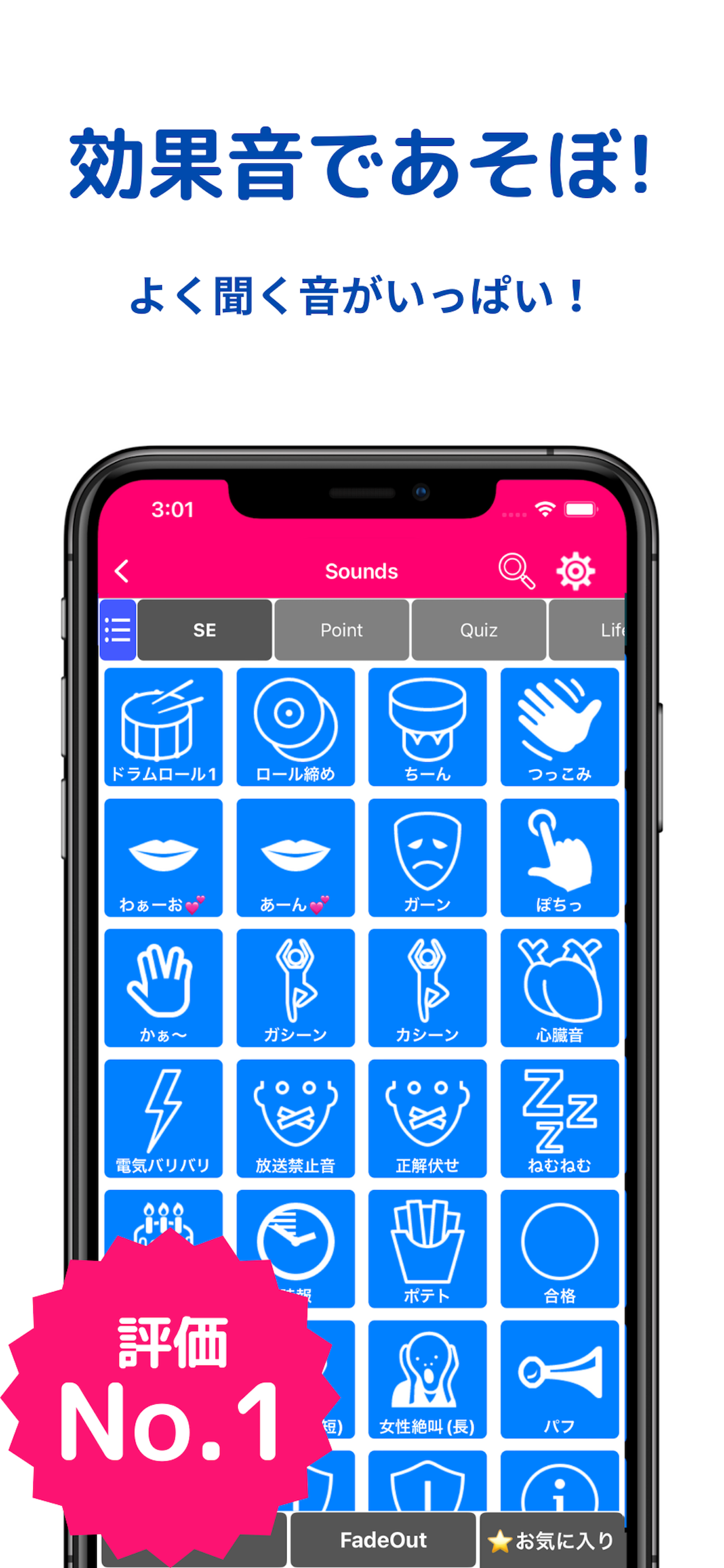 いろんなところ、いろんなときに使えて便利。 クイズの音とかだけかと思ったがゲームの音やオナラの音もあっておもしろい。