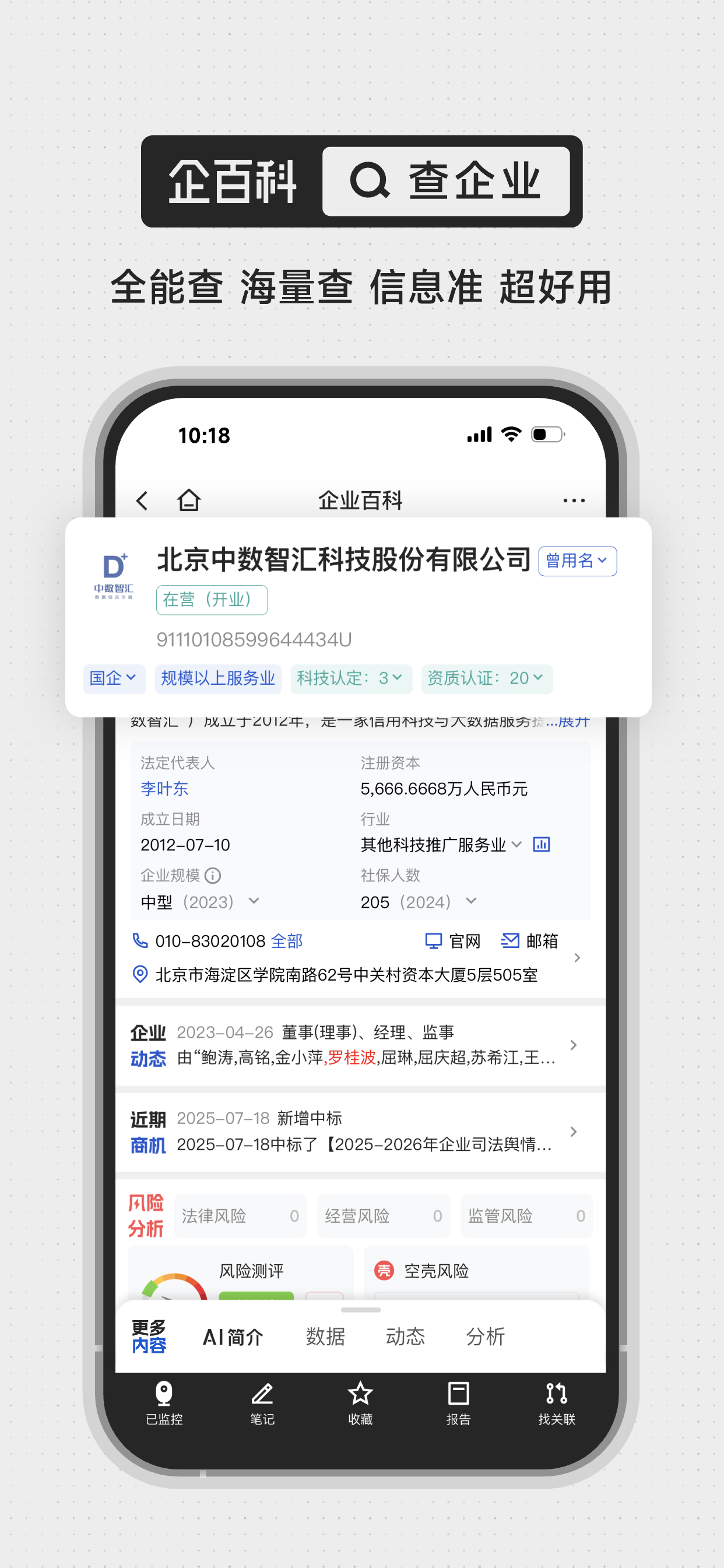 查企业,查商机,查标讯,查风险,就用企百科,免费查,全能查。