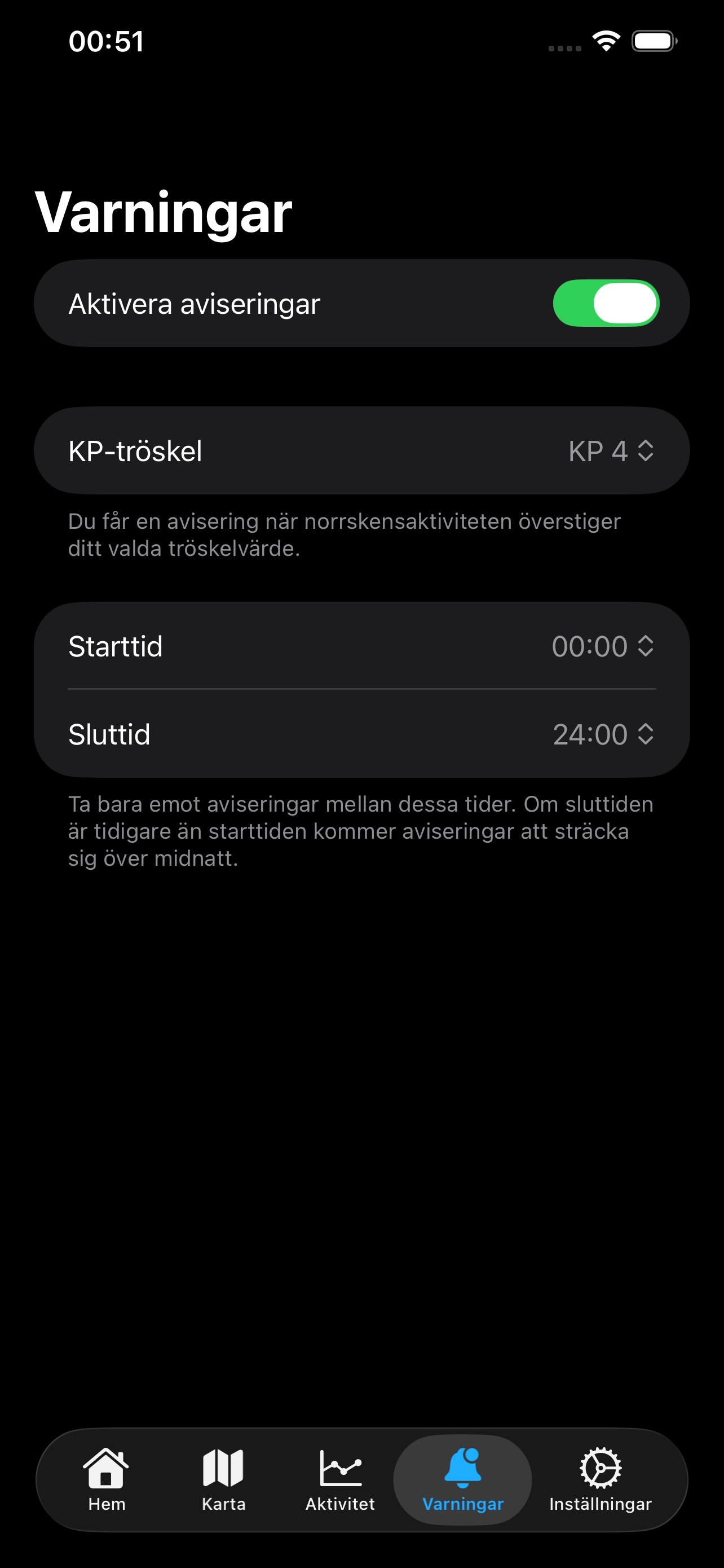Disappointed. Paid extra to get alerts only to find that they are for North America only so in Sweden I'm getting them in the middle of the day... *useful* have contacted them but of course, no reply.