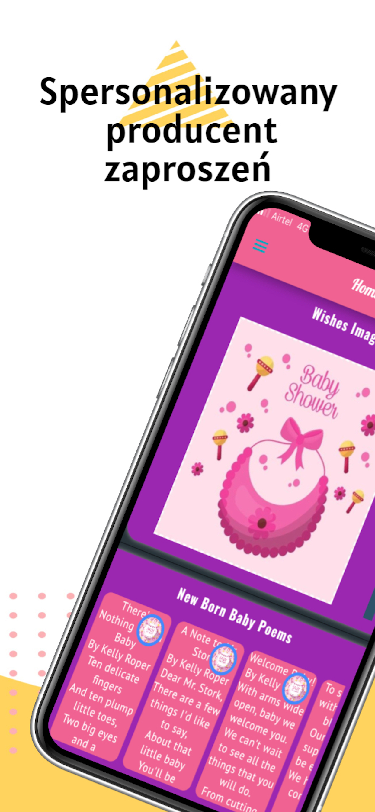 "Przedstawiamy aplikację Baby Shower, kompleksową i przyjazną dla użytkownika aplikację mobilną zaprojektowaną w celu zwiększenia wrażenia z okazji przybycia nowego dziecka. Dzięki szerokiej gamie funkcji i obszernej kolekcji zaproszeń na baby shower, e-kartek, wiadomości, cytatów, zdjęć, zdjęć, gifów i memów, ta aplikacja jest Twoim zasobem do wyrażania szczerech gratulacji i dzielenia się ciepłymi życzeniami z przyjaciółmi , rodzina i bliscy.
