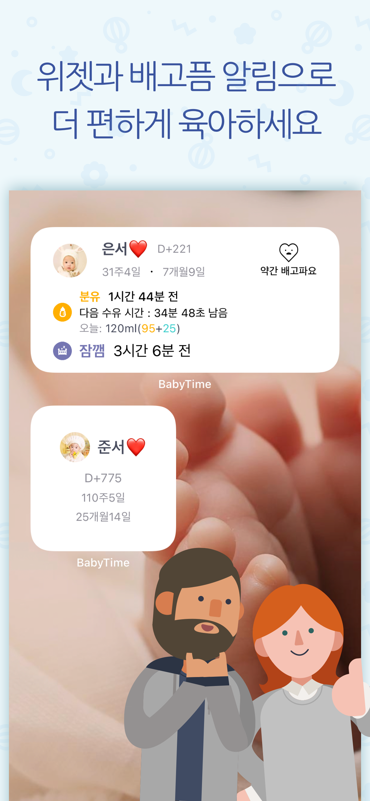 스마트폰 생활 10년 넘게 하면서 어플 리뷰는 처음 적어보는듯합니다ㅎㅎ 너무 감사하게 잘쓰고있어요! 특히 다음 수유텀까지 남은시간 계산이 너무 좋아요ㅠㅠ 혹시 가능하시다면... 아이폰 잠금화면에도 위젯을 설치할수있는데, 거기에도 베이비타임 위젯을 쓸수있으면 좋겠어요ㅠㅠ 아기가 울때 폰 잠금을 풀지 않아도 바로 핸드폰만 들면 시계와 함께 다음 수유텀을 확인할수 있으면 좋겠습니다...♡ 가능하시다면 반영해주시어요.. 항상 감사합니다 총총...♡