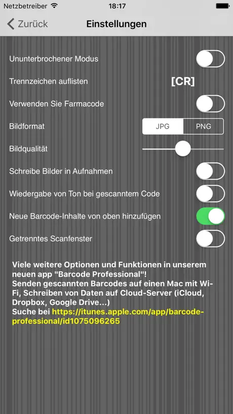 Auch können mit iTunes Filesharing, können Sie die Liste der gescannten Codes (und Foto aufgenommen) auf Ihren PC (für die Verwendung in Excel etc.)