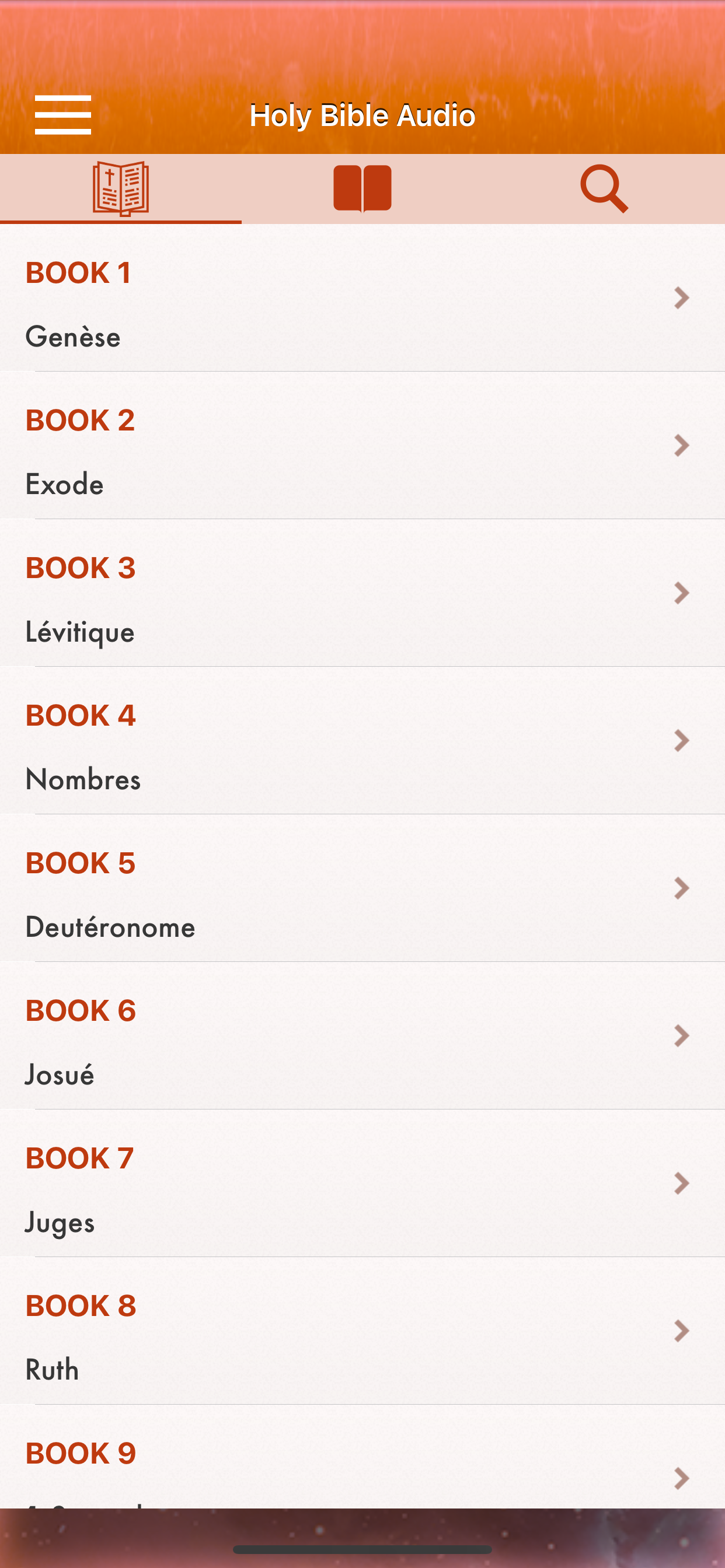 audio de mauvaise qualité, en exemple le chapitre 10 du livre de josue est quasiment inécoutable... je trouves cela fort regrettable car l’application est à acheter après le livre 3 qui sont eux de bonne qualité. a noter aussi que le narrateur du livre de josue mais peu d’entrain a son plaisir de lire et c’est bien dommage car l’écoute en est hélas gêner.