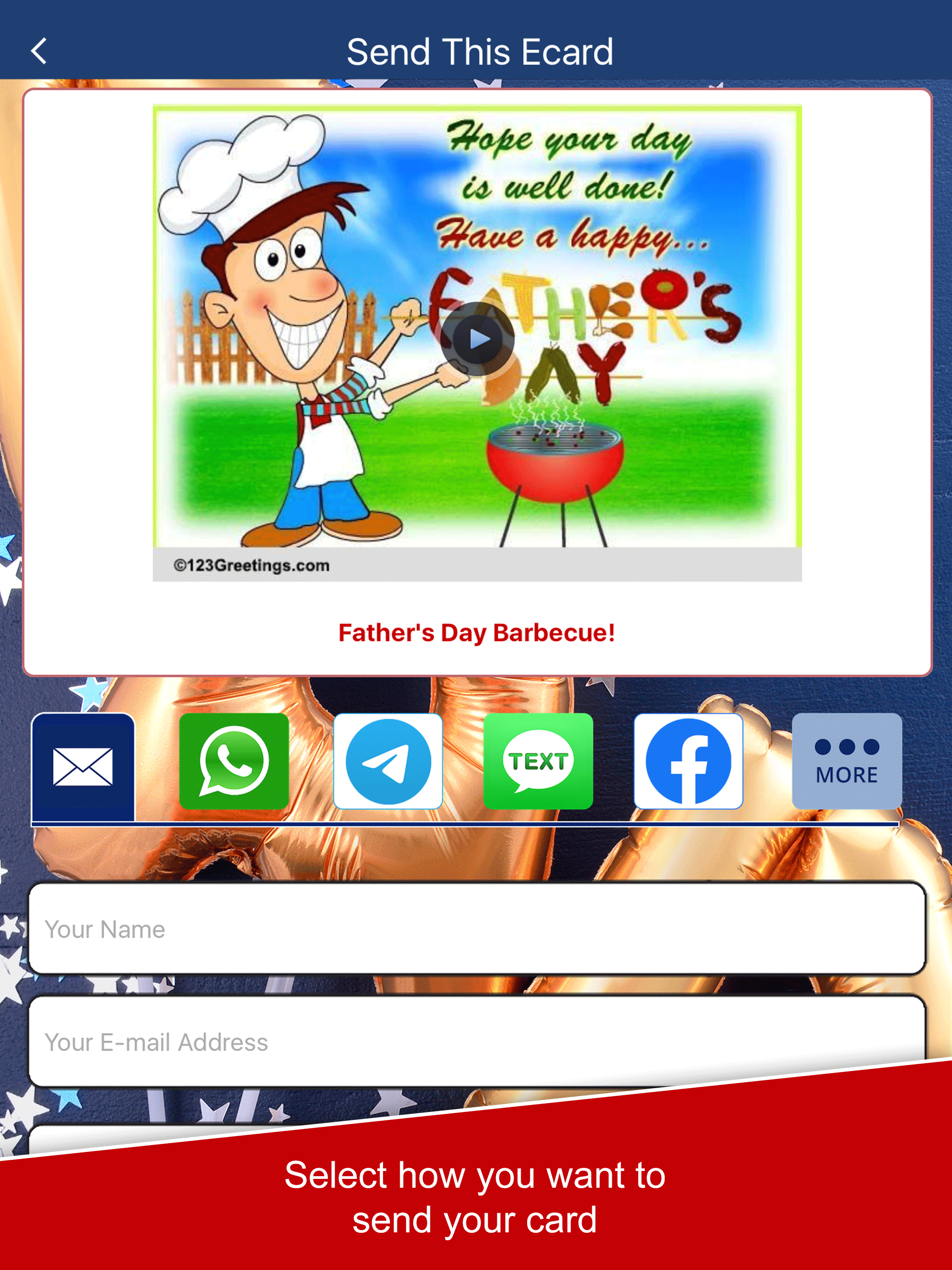 This app is totally free. They have enough cards to send your family and friends all a different card. I love this app. Thank you.