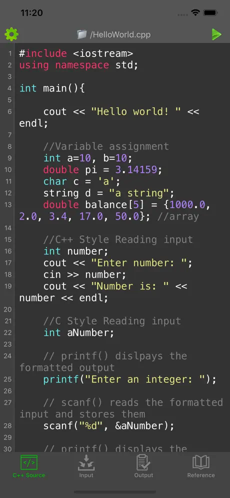 Write C/C++ code directly on your iPhone, iPad and iPod Touch! This app supports the latest C/C++ compilers and is ideal for learning and testing code snippets!