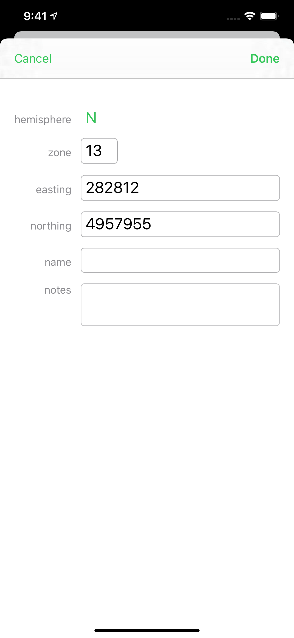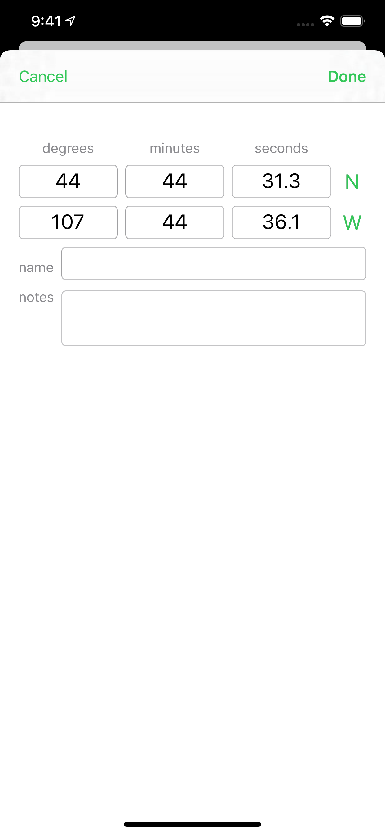 Coordinates makes it a snap to convert between the three formats for latitude and longitude: decimal degrees, degrees and decimal minutes, and degrees-minutes-seconds, as well as UTM coordinates. Just tap the type of coordinates you have, enter them, and all four formats are instantly shown.