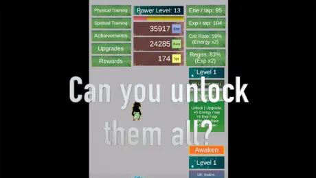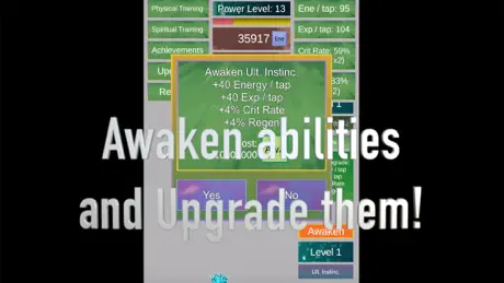 This game is super fun! I love having a clicker type game that is also a dragon ball based rpg! The sprites and animations are really cool and it’s well designed. However, there are two things that keep it from being the perfectly addictive mobile game. The first thing is that the AWA and SPI mini games get repetitive after awhile and as far as I can tell there is no one to use your moves on. It is fun as is but if you ever wanted to add more mini games, the fans would thank you. SECOND AND MOST IMPORTANT THING IS THE FREQUENCY OF ADS. I realized I was getting ads what seemed like every 10 seconds. I set a timer for two minutes and then clicked away. I counted ten ads in that time which is 12 seconds/ad or 5 ads/min. If this rate kept up and I was playing for two hours instead of two minutes… that would be up to 600 ads! Even if it was only 300 ads that are 5 seconds long each, that’s 25 minutes (1,500 seconds). I am not dissing the developers or the game I am just saying that I’d like to see a future where you run less frequent ads, even if they are longer. Other wise I’m gonna keep playing. Really fun game!