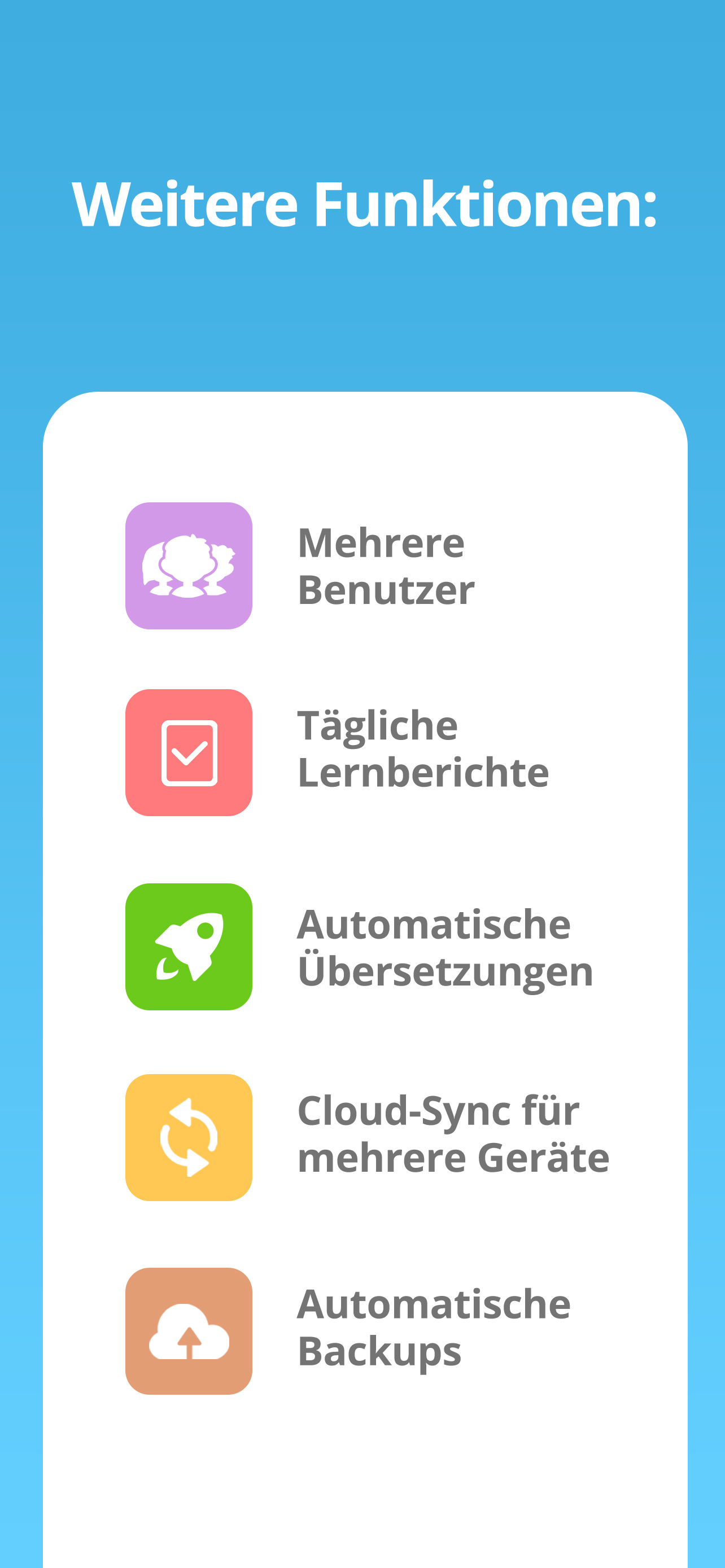 Auf meinem Handy stürzt es ständig ab. Keine Aufgabe kann zu Ende gemacht werden, schon ist die App von selbst geschlossen. Habe aber für ein ganzes Jahr bezahlt und kann nichts machen. Auf dem Handy meines Sohnes geht es. Aber der Kauf war für die ganze Familie gedacht.