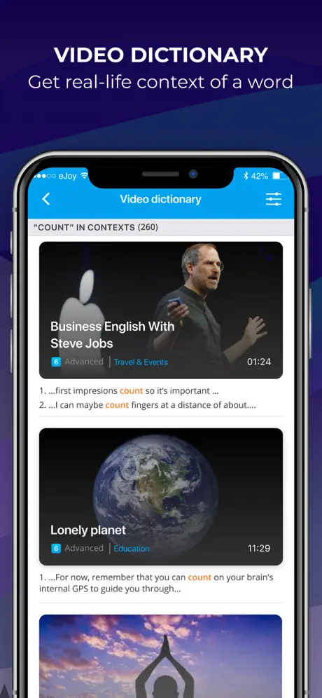 eJOY Reader is a part of eJOY All-in-One solution for mastering English language. The best way to learn English in the long run is to learn with the content you love.