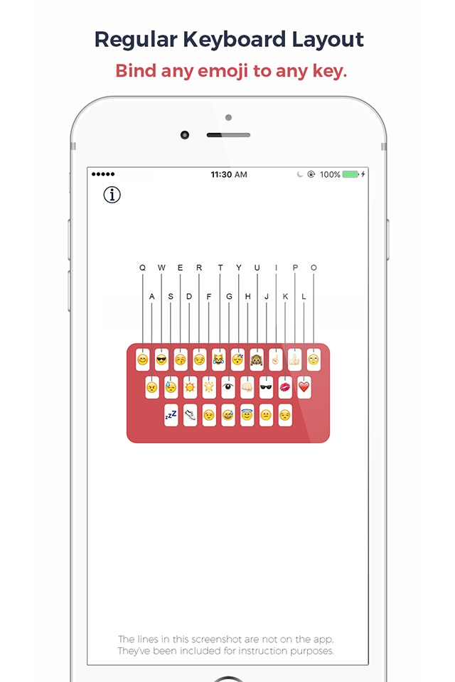 - You open the Emojo app and you'll see a keyboard layout with some emojis on it, there you can add and customize that keyboard and add your favorite emojis. Notice there are 26 emojis. 1 for each letter of the keyboard, the layout of the keyboard is the same as the layout of your iPhone's keyboard.