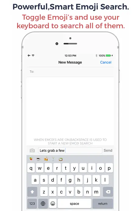 Tap & Hold to send emojis right from the keyboard you're typing on.Search Emoji's with the keyboard you were just typing on. Never scroll to find an Emoji again. This means you'll never have to leave the keyboard to send your favorite emojis. (6s users can also use force touch to enable the emojis).