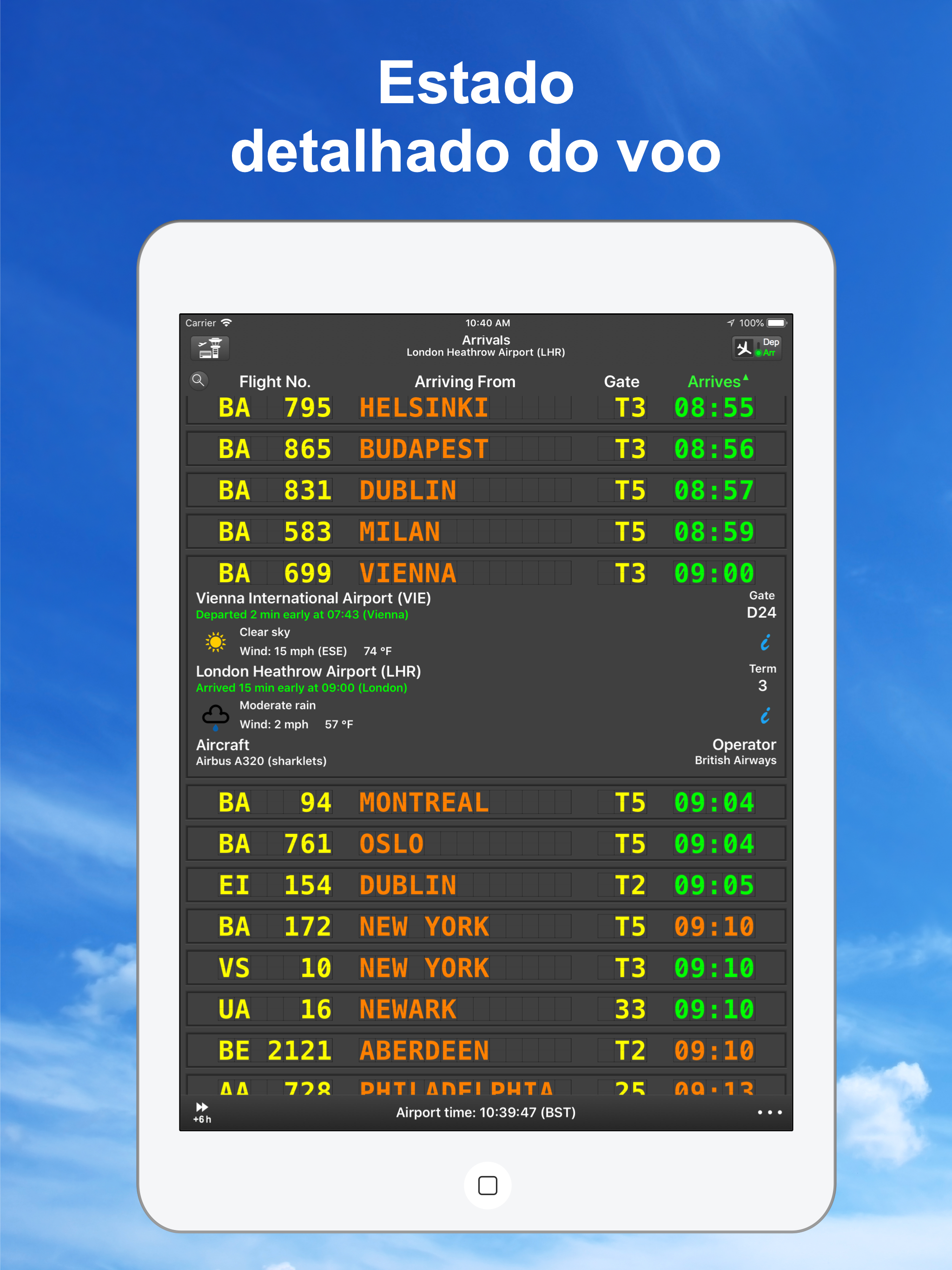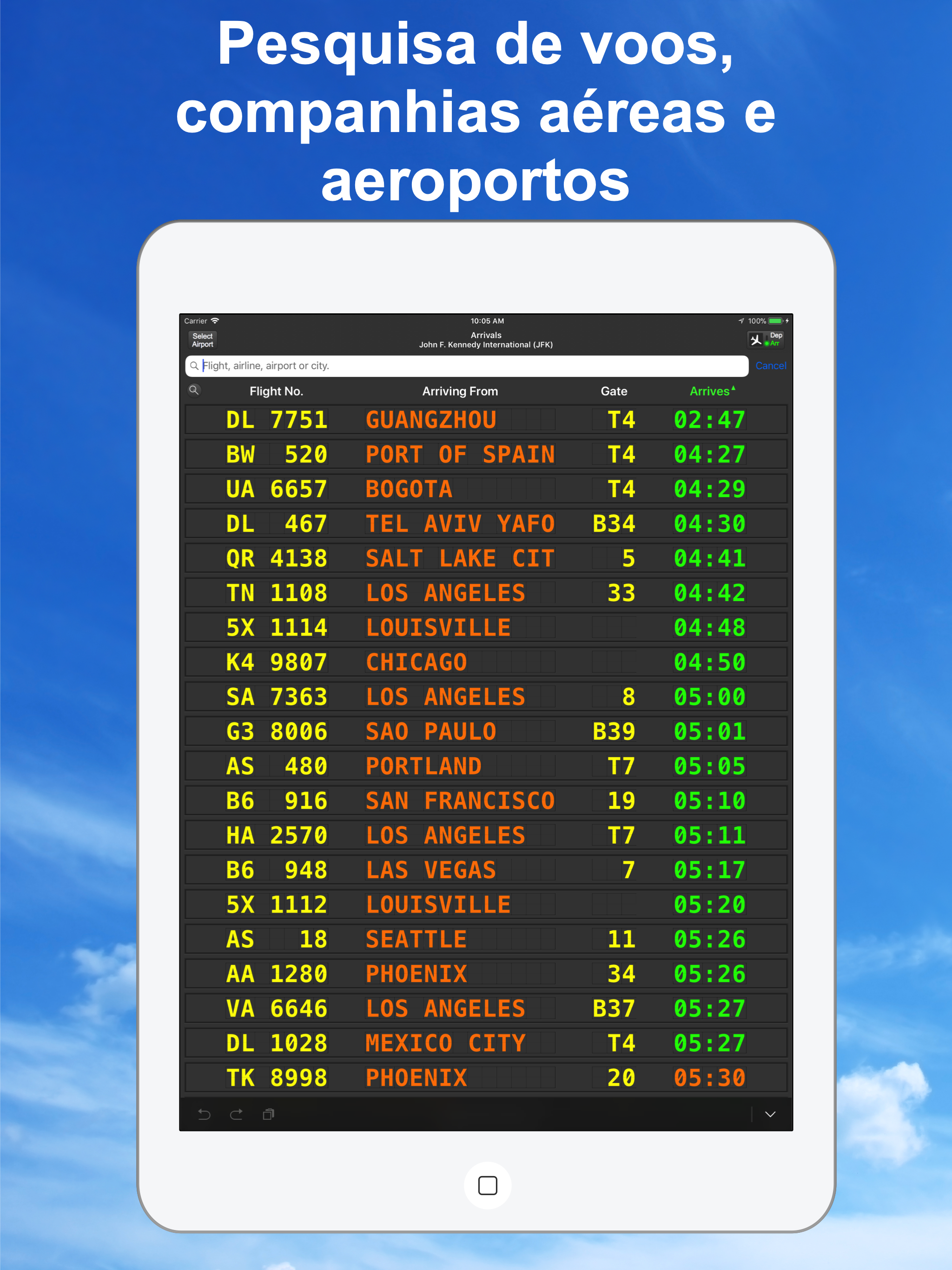 The airport fligh board in the palm of your hand.