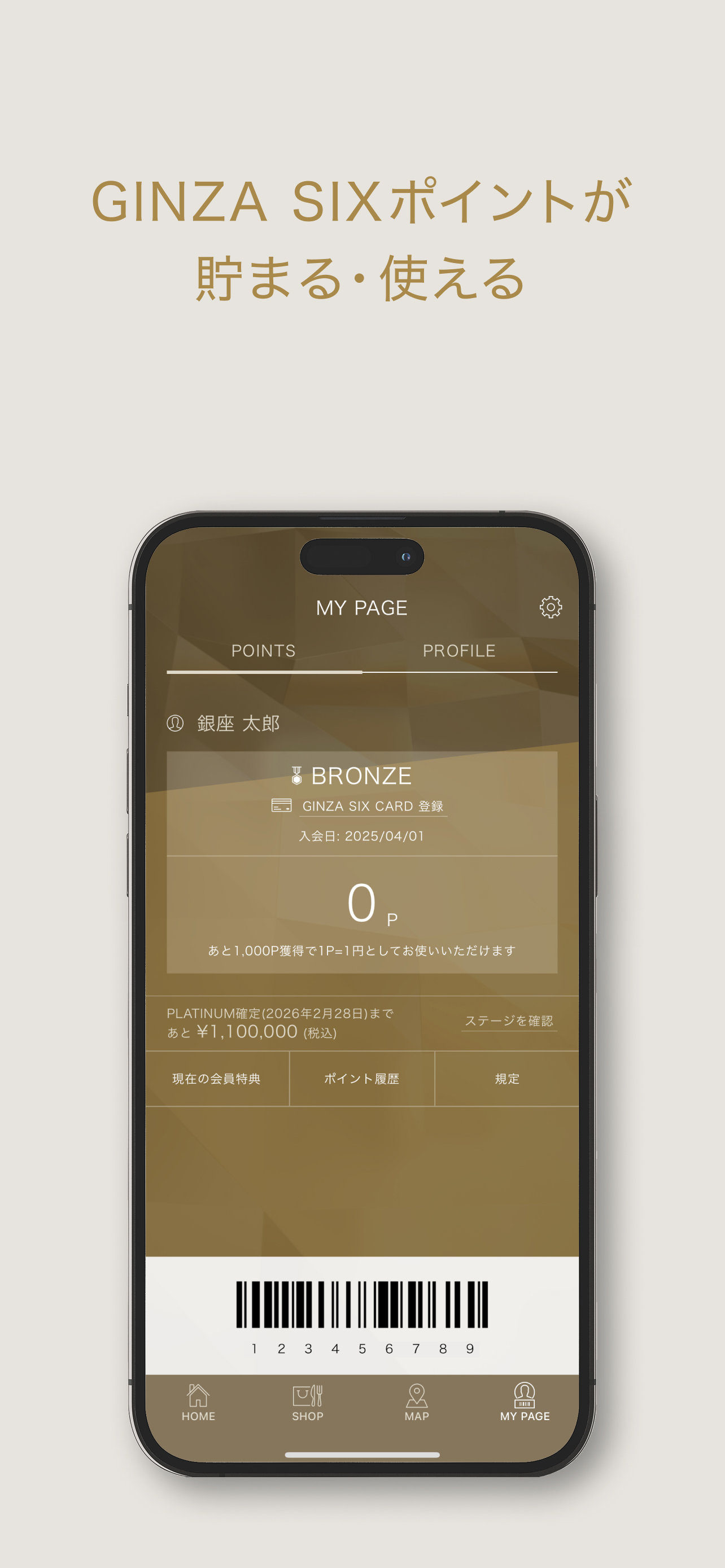 対象店舗でお買い上げ時にアプリを提示すると、GINZA SIX ポイントが貯まります。期間限定ポイントアップのチャンスもあります。