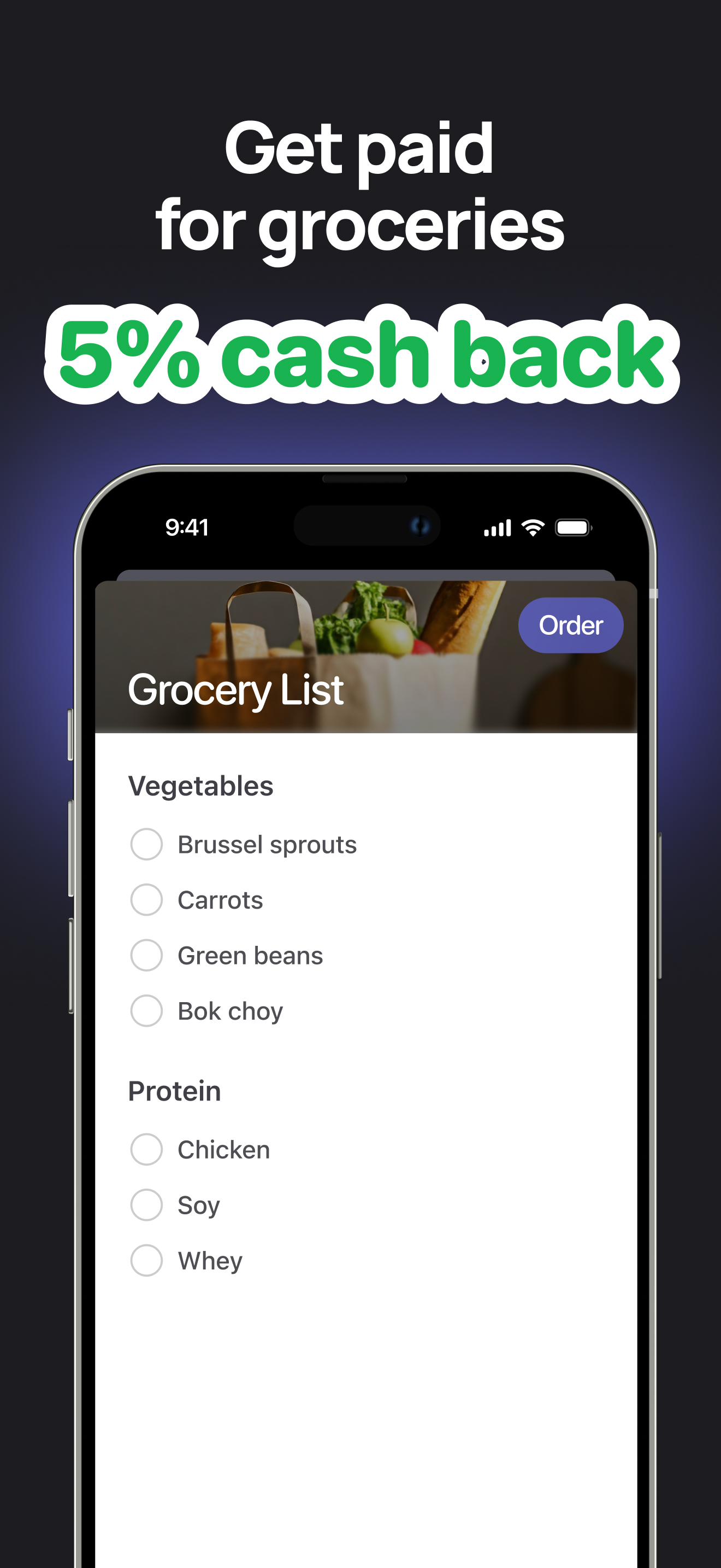5) ORDER YOUR GROCERY LIST, GET 5% CASH BACK