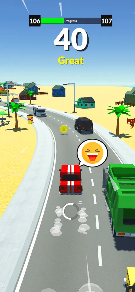 If you don’t have fun playing this ultra simplistic game, you’re doing it wrong. Create your own challenges within the game; see how close you can come, see how fast you can complete a course, see how many coins you can get (although I’m also not sure what they’re for outside the challenge of collecting them).. if you hate traffic as much as I do, you’ll likely find this game cathartic as I do.. one thing though; the car doesn’t start smoking anymore, which is a bummer.. part of the challenge was to see through first the light, then the heavy smoke, please consider bringing that back.. the actual finish line is a big plus, however..