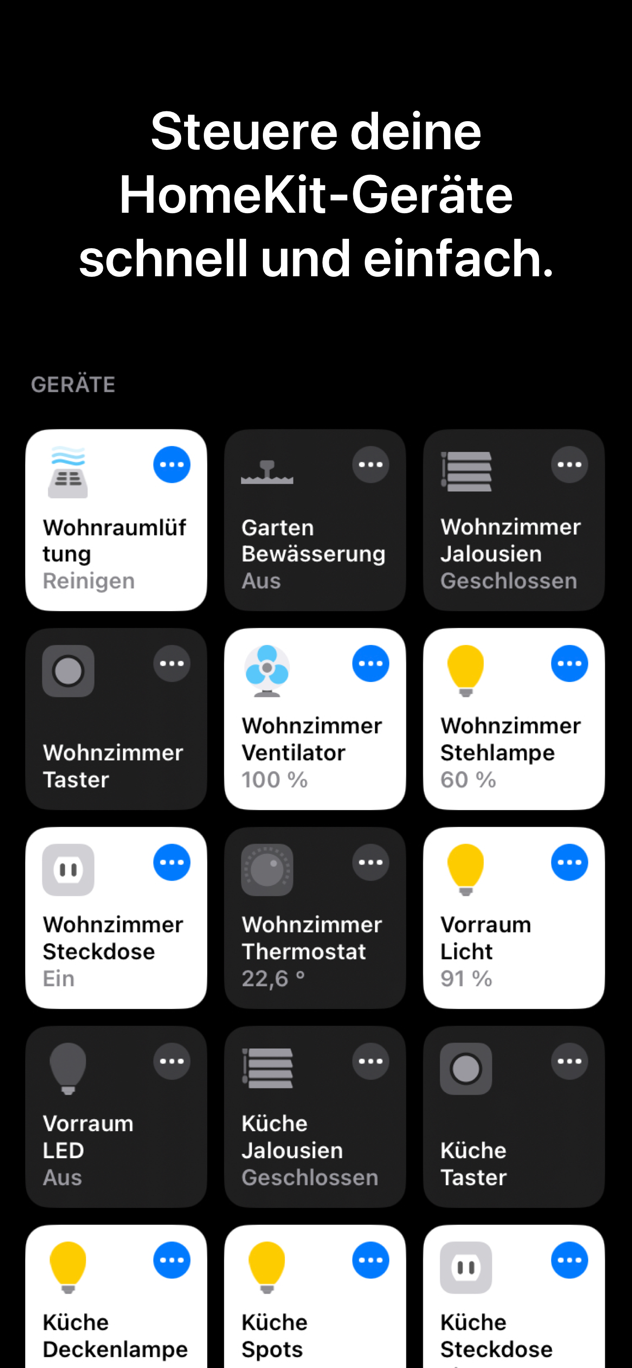 - Steuere deine Geräte mit Widgets direkt vom Homescreen oder Sperrbildschirm aus.