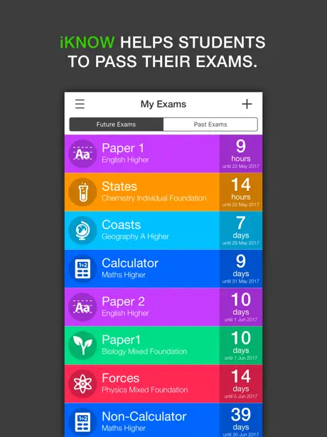From the makers of the 5 star rated Exam Countdown app, comes iKnow the 'must have' exam revision app for students preparing for examinations at GCSE and A level in the UK!