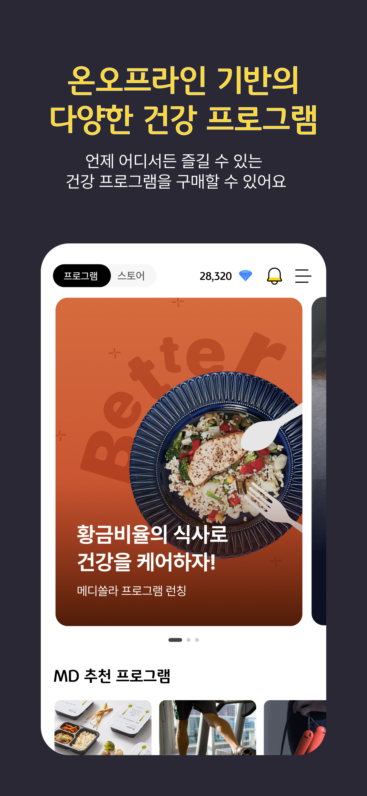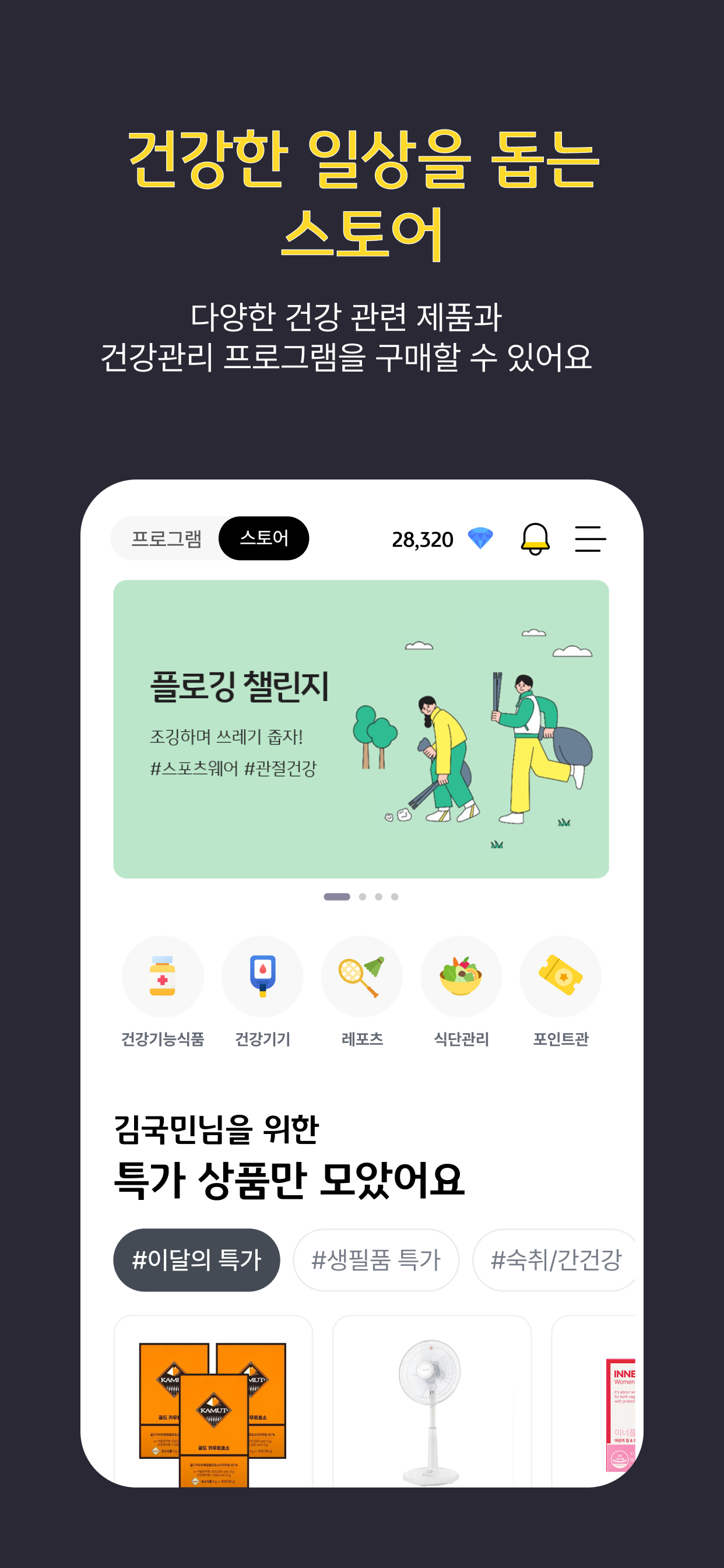 다양한 건강 관련 제품과 건강관리 프로그램을 구매할 수 있어요.
