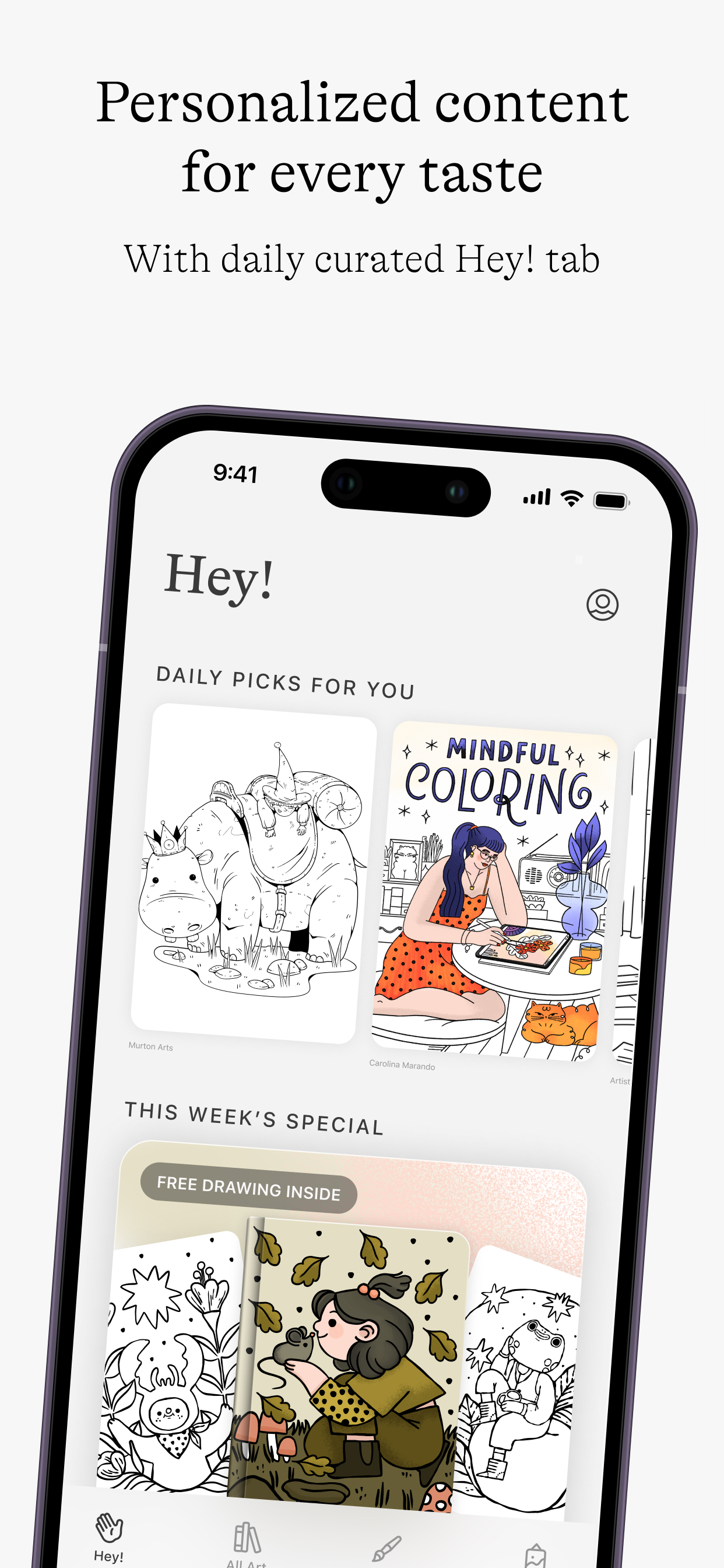 Explore hand-drawn illustrations by independent artists and dive into a friendship of colours and brushstrokes right on your trusty iPad or iPhone. Unleash your creativity, nurture your artistic side, and discover the incredible impact colouring can have on your overall well-being!