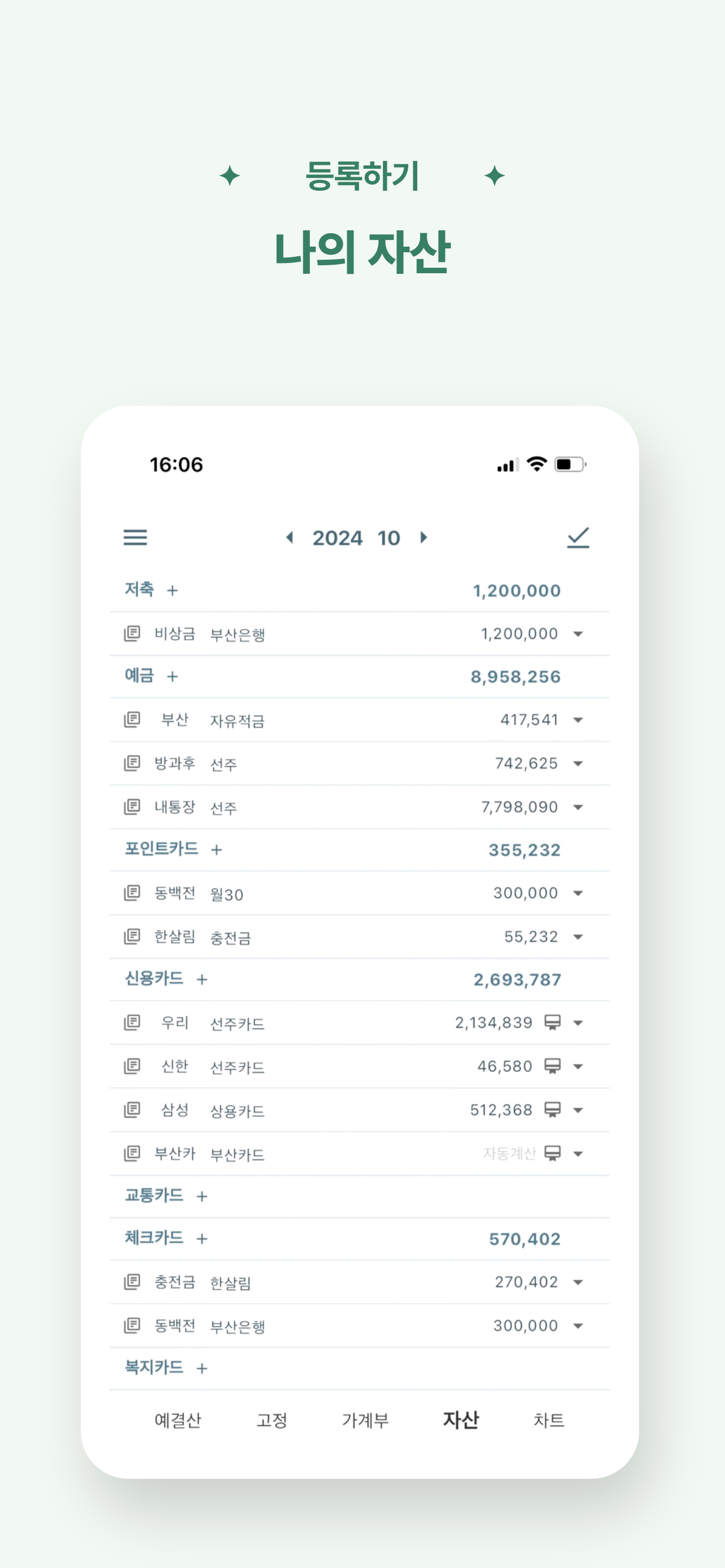 이미 있는 자산은 자산탭에서 저장이 안되는 것 같은데 맞나요? 가계부 쪽에 입력을 해야만 나타나는 건지 이 부분이 불편합니다ㅜㅜ