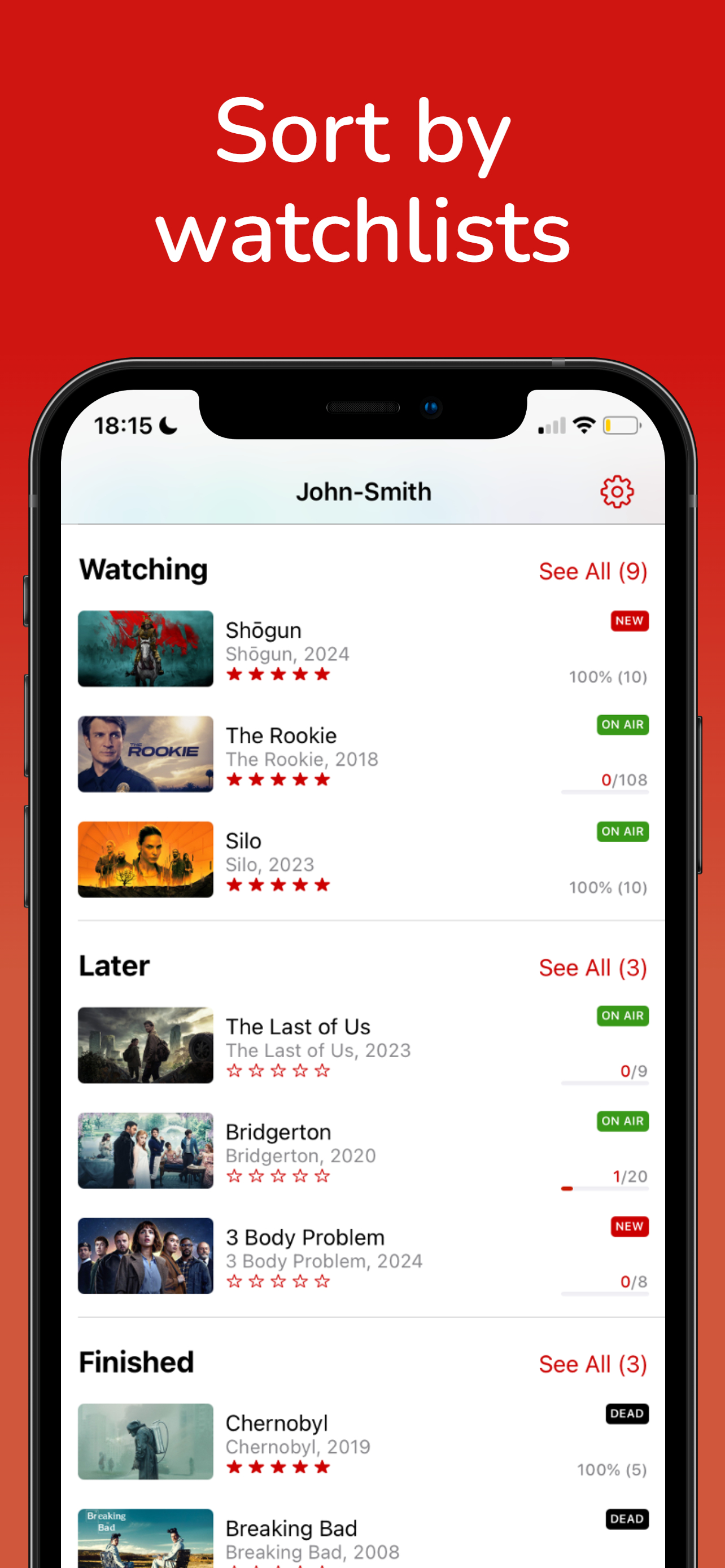 - Mark the episodes & movies you watched.